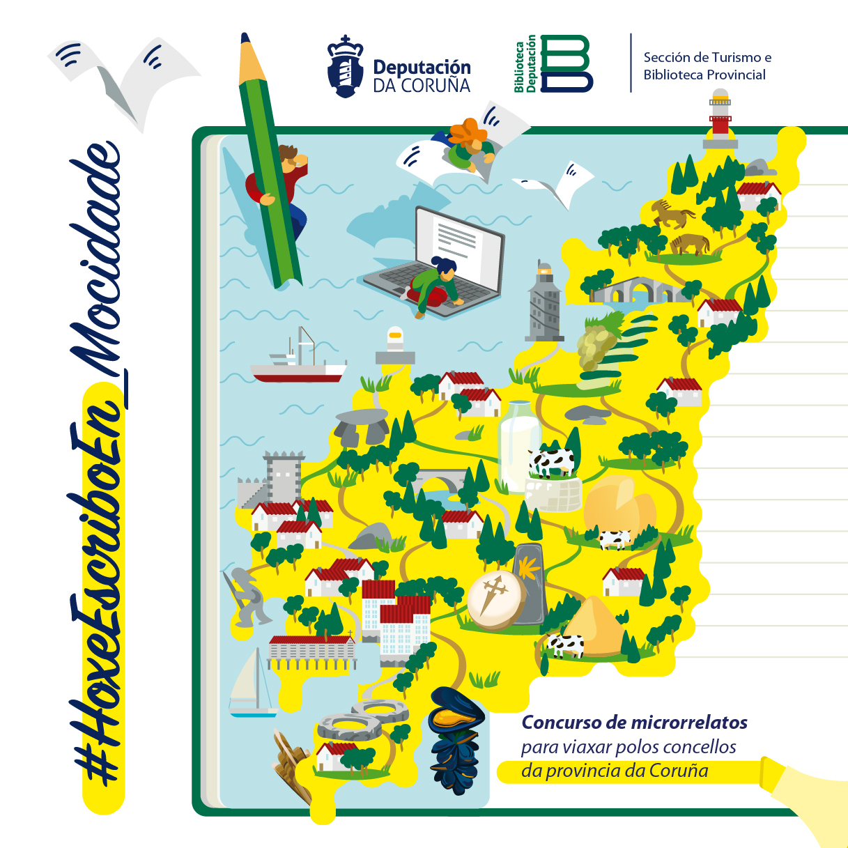 Para iso, a Biblioteca Provincial xunto coa Sección de Turismo da Deputación da Coruña, convocan un concurso de microrrelatos inspirados na provincia da Coruña e orientados á mocidade da provincia da Coruña.