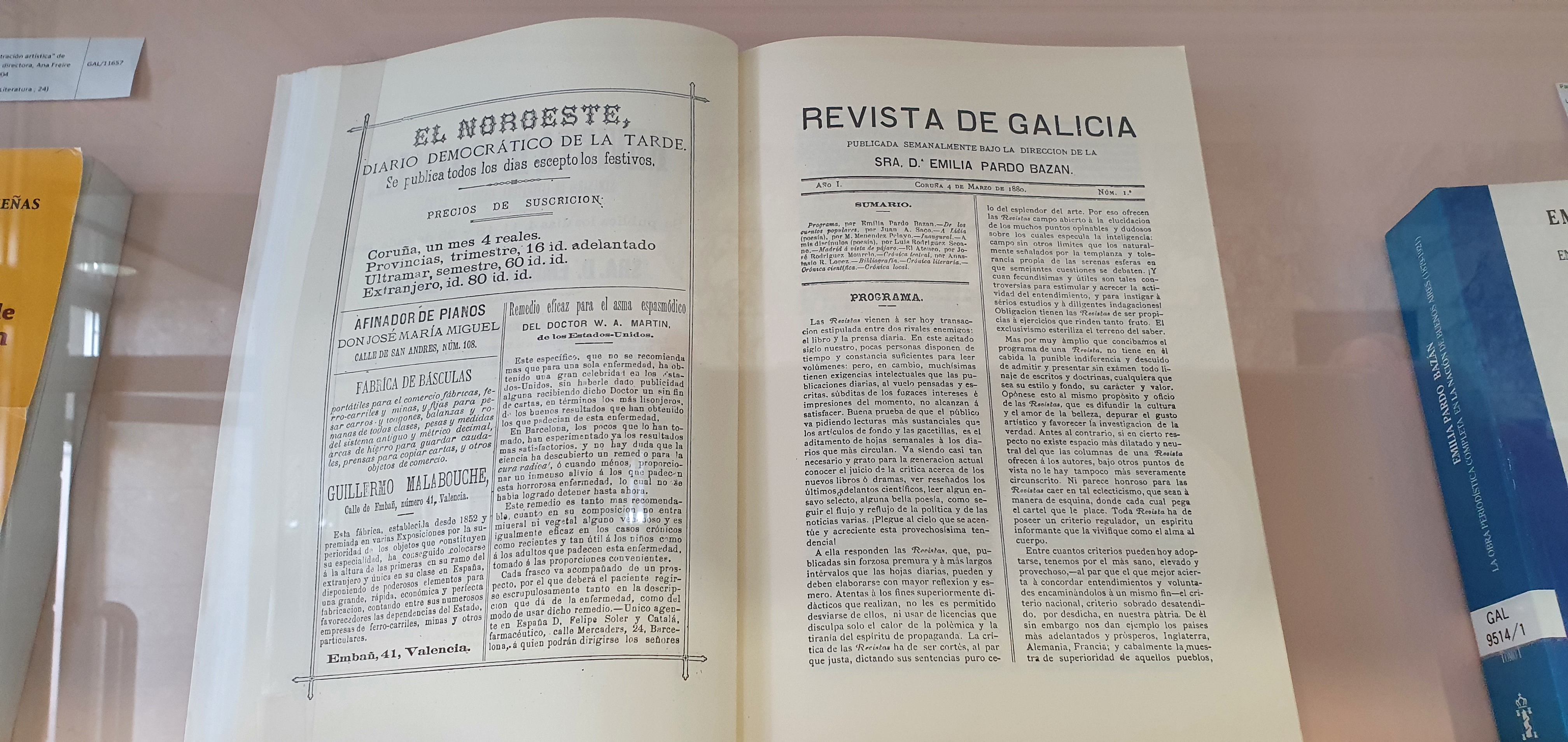 Por mor das diversas actividades que entorno a esta figura se están a levar a cabo, botaremos en falta non podermos incluír nesta ollada algunhas das mais estimadas pezas que, da autora, posúe esta biblioteca. Sería o caso, por exemplo, do manuscrito “La poesía regional gallega: discurso presidencial leído en la velada para honrar la memoria de Rosalía de Castro…” de 1885, que se atopa prestado á Biblioteca Nacional para formar parte da súa mostra Emilia Pardo Bazán: El reto de la modernidad que actualmente se exhibe en Madrid, e o vindeiro mes de outubro estará no Kiosko Alfonso da Coruña.