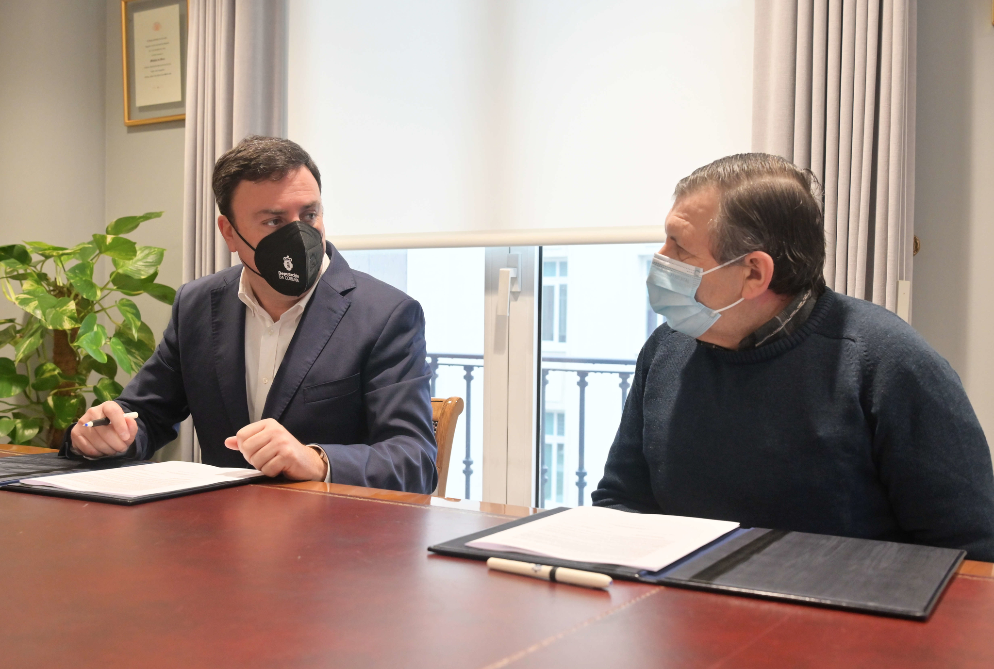 O presidente da Deputación da Coruña, Valentín González Formoso, e o presidente da Asociación Apicultores Casa do Mel, Manuel Ferreira, acompañados da concelleira de Turismo do Concello das Pontes, Elena López, asinaron hoxe o convenio polo que a institución provincial financia o programa para a selección, reprodución e mellora xenética da abella negra local que está a desenvolver a Casa do Mel situada de Goente.