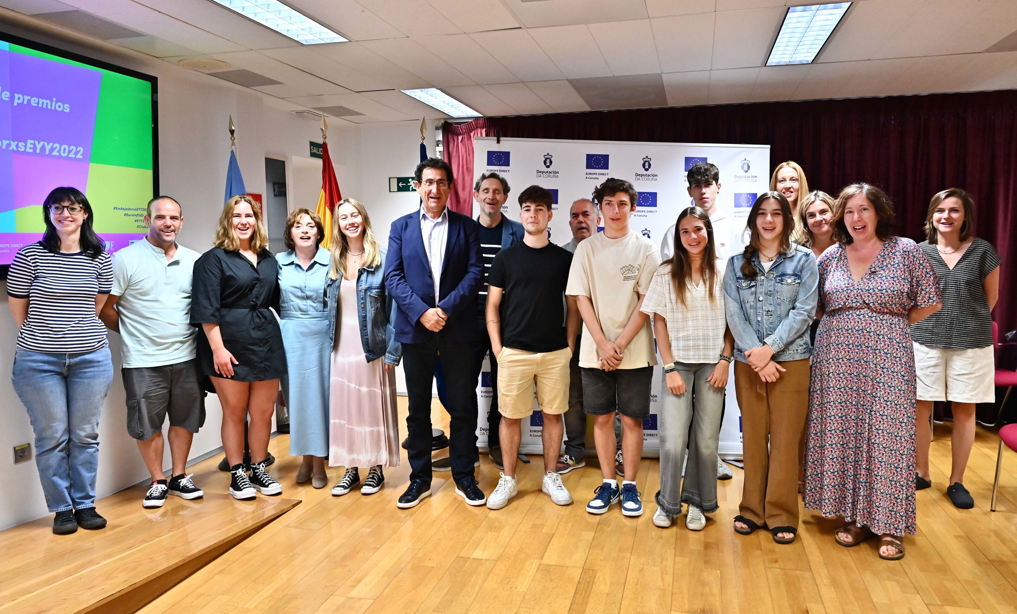 Nun acto celebrado no Pazo Provincial da Deputación da Coruña, o deputado delegado de Economía e Facenda, Antonio Leira, e o Oficial Maior, Miguel Iglesias, foron os encargados de facer a entrega dos premios e tamén de lembrar o importante labor que estes mozos e mozas realizaron durante dúas semanas. "Precisamos xente moza coma vós, mozos que sexan axentes do cambio, emprendedores e innovadores, non só nas súas comunidades locais, senón tamén a nivel europeo", destacou Leira.
