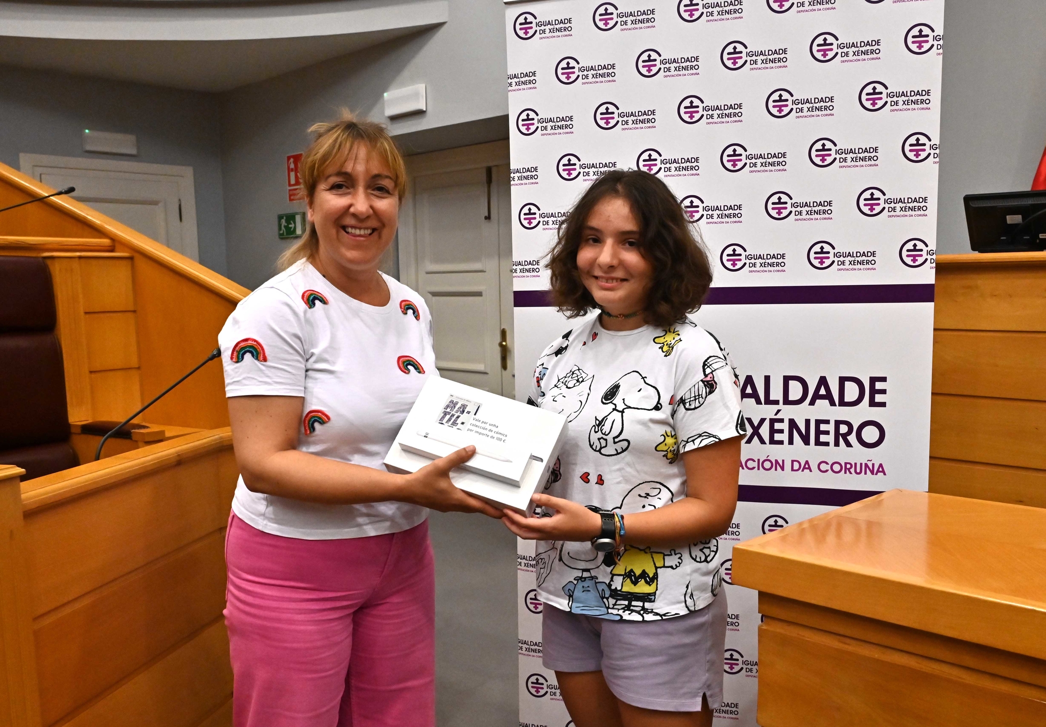 María Muíño, que fixo entrega de material educativo e electrónico, animou as gañadoras a "facer uso do don da creatividade para difundir valores de igualdade, xustiza social e promover o cambio cara a unha sociedade máis igualitaria"