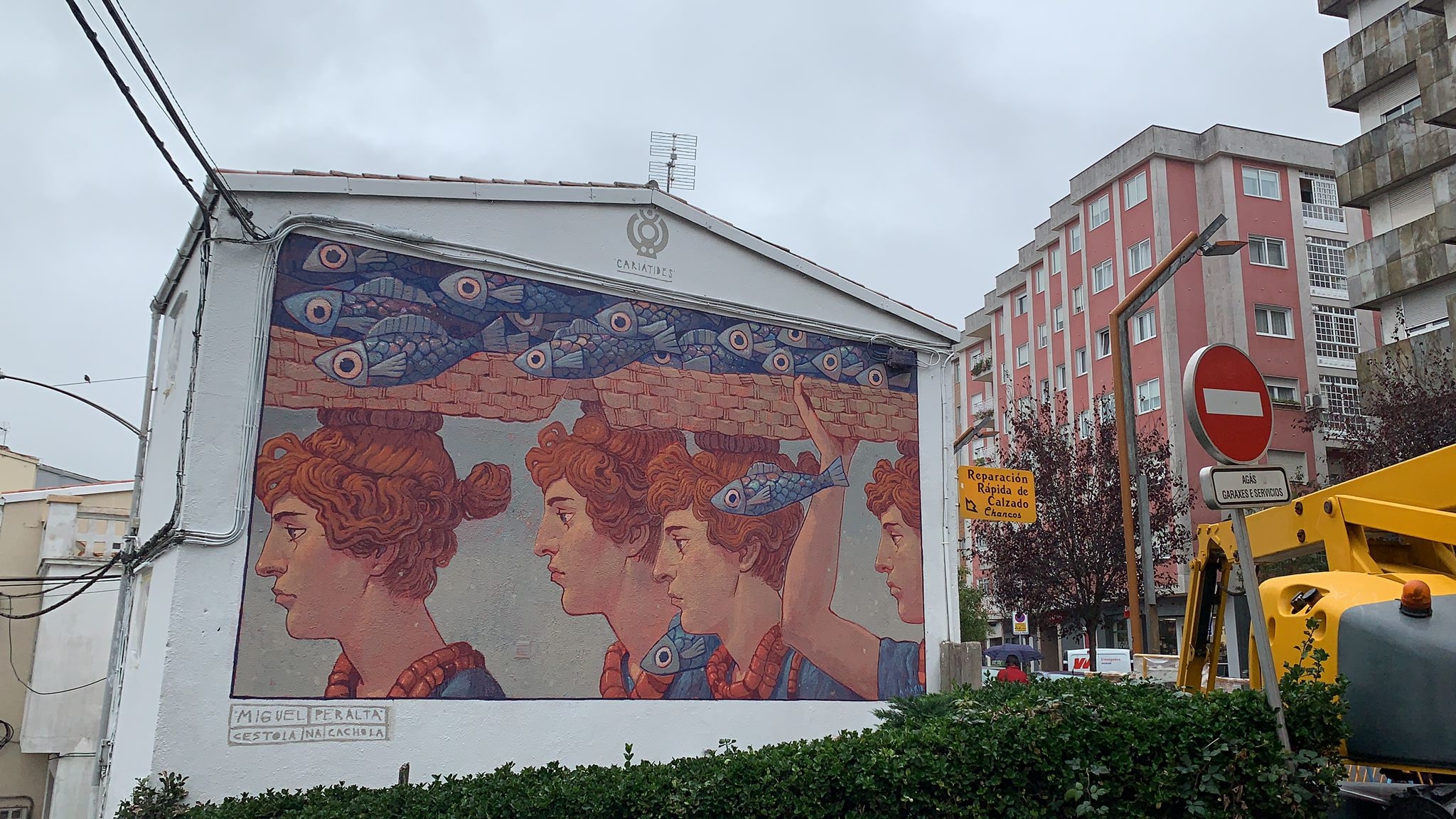 Xoana Almar, amosou e describiu parte dos murais que a cooperativa Cestola na Cachola leva realizado por todo o territorio galego e mesmo en lugares como Portugal, Valencia ou Extremadura, así como as técnicas que soen utilizar entre as que destacou a pintura acrílica, o xiz e o esgrafiado. Precisamente, outro dos muralistas integrantes de Cestola na Cachola, Miguel Peralta, é o autor do mural que vén de rematar no barrio de San Antoniño, e financiado pola Deputación da Coruña no marco da súa participación na Placemaking Week Europe.