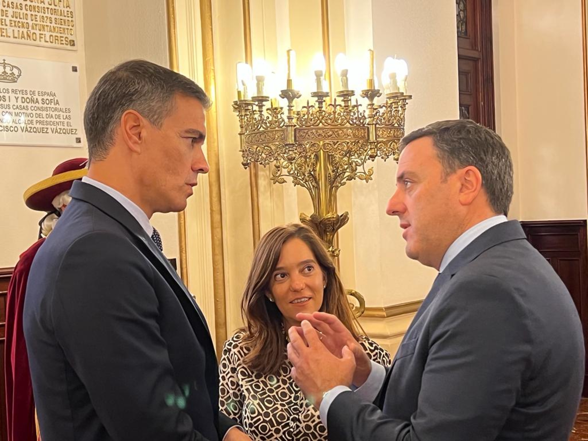 O presidente da Deputación e alcaldesa da cidade recibiron ao presidente do Goberno, Pedro Sánchez, en María Pita