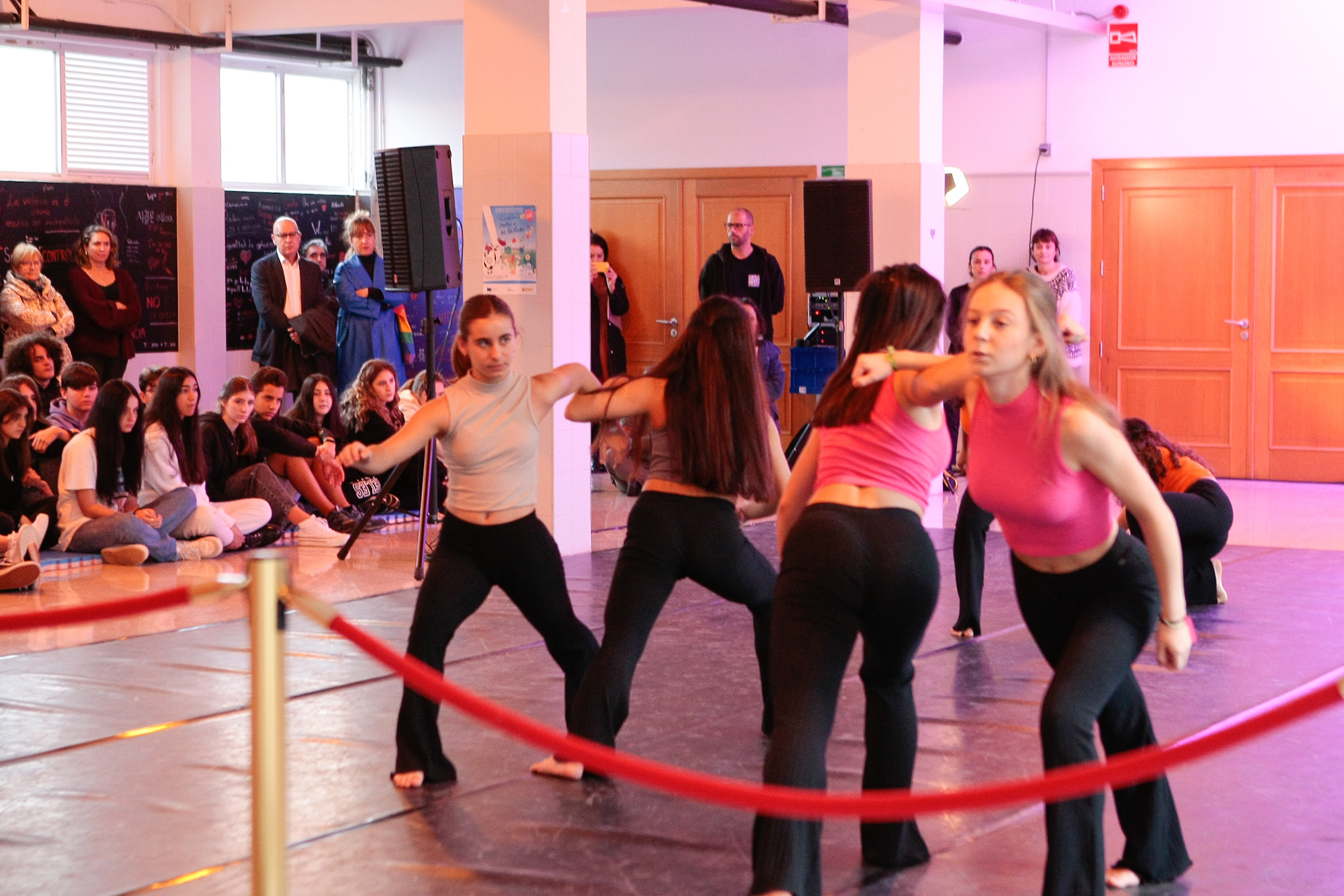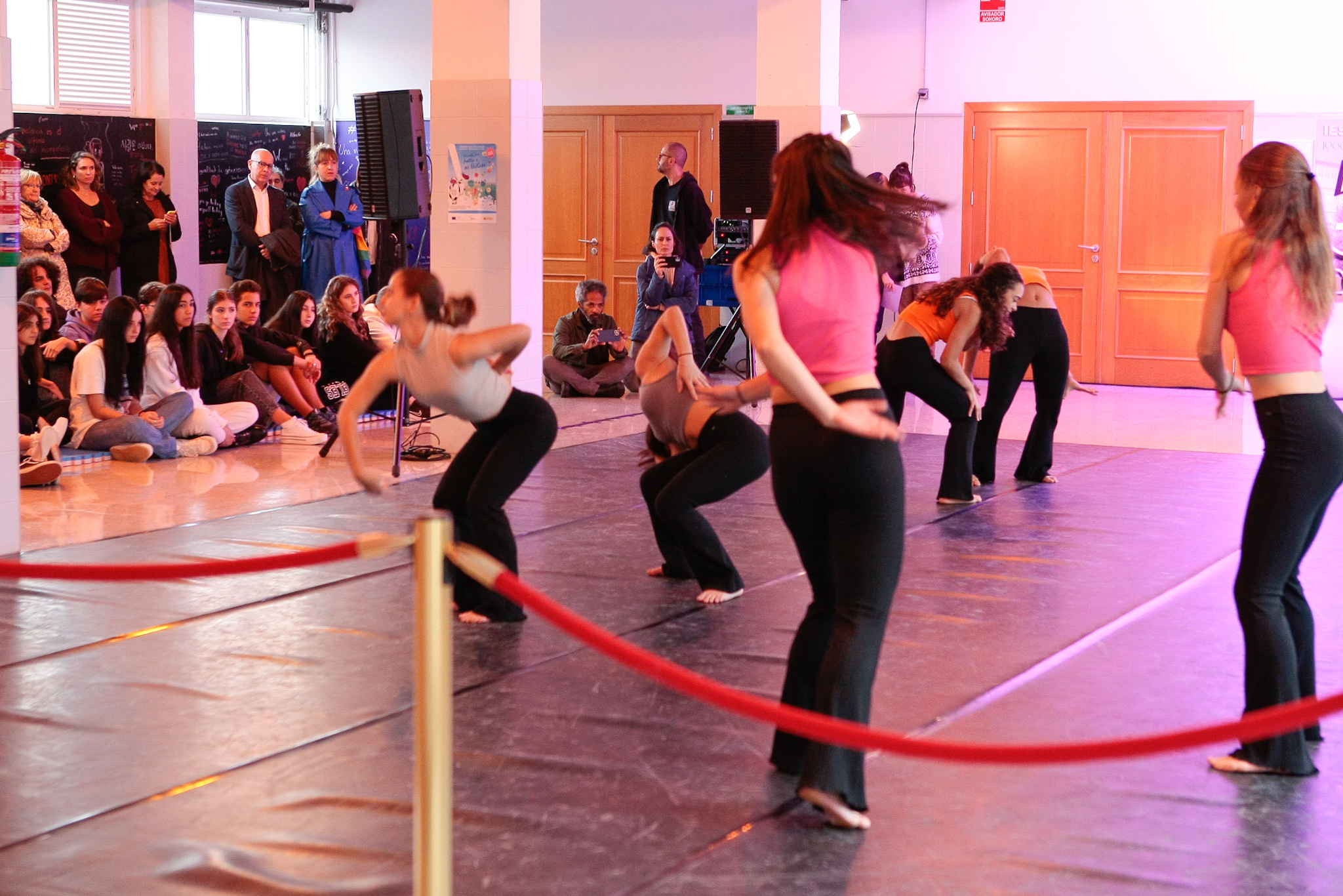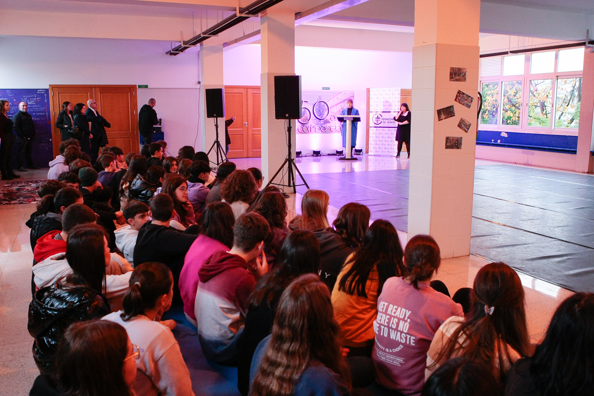 A sesión no IES Puga Ramón - á que tamén asistiron o vicepresidente da Deputación, Xosé Regueira, persoal técnico do departamento provincial de Igualade e persoal docente do IES- rematou cunha actuación a cargo de sete alumnas do Conservatorio Profesional de Danza da Deputación titulada "Vivas".