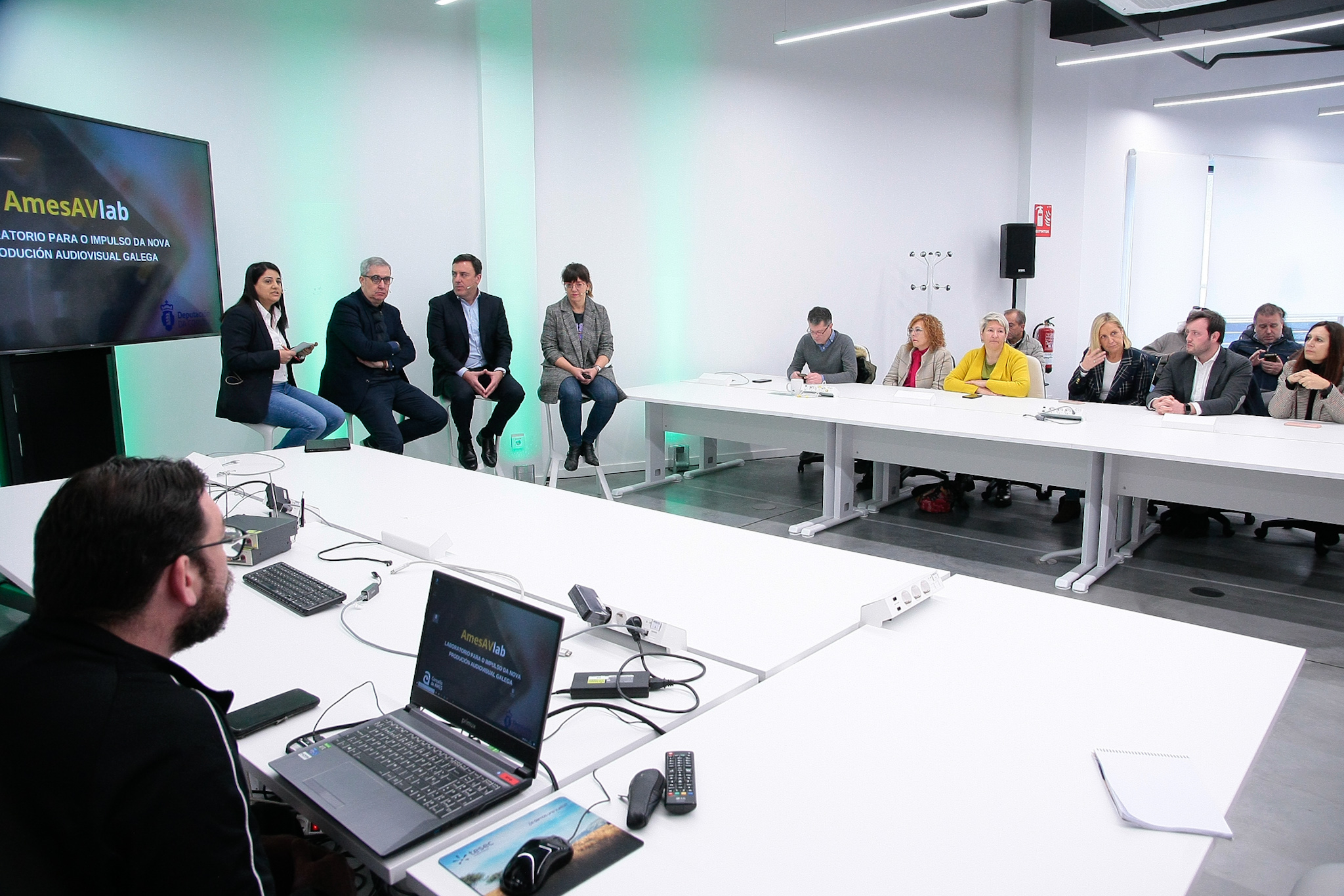 O presidente da Deputación destacou que "este proxecto 'Ames Av Lab está en consonancia co estudio audiovisual que estamos a desenvolver na Coruña, cun investimento de 8 millóns de euros, para situar a Galicia como un dos referentes audiovisuais en Europa e que o talento local non teña que marchar para poder desenvolver os seus proxectos".