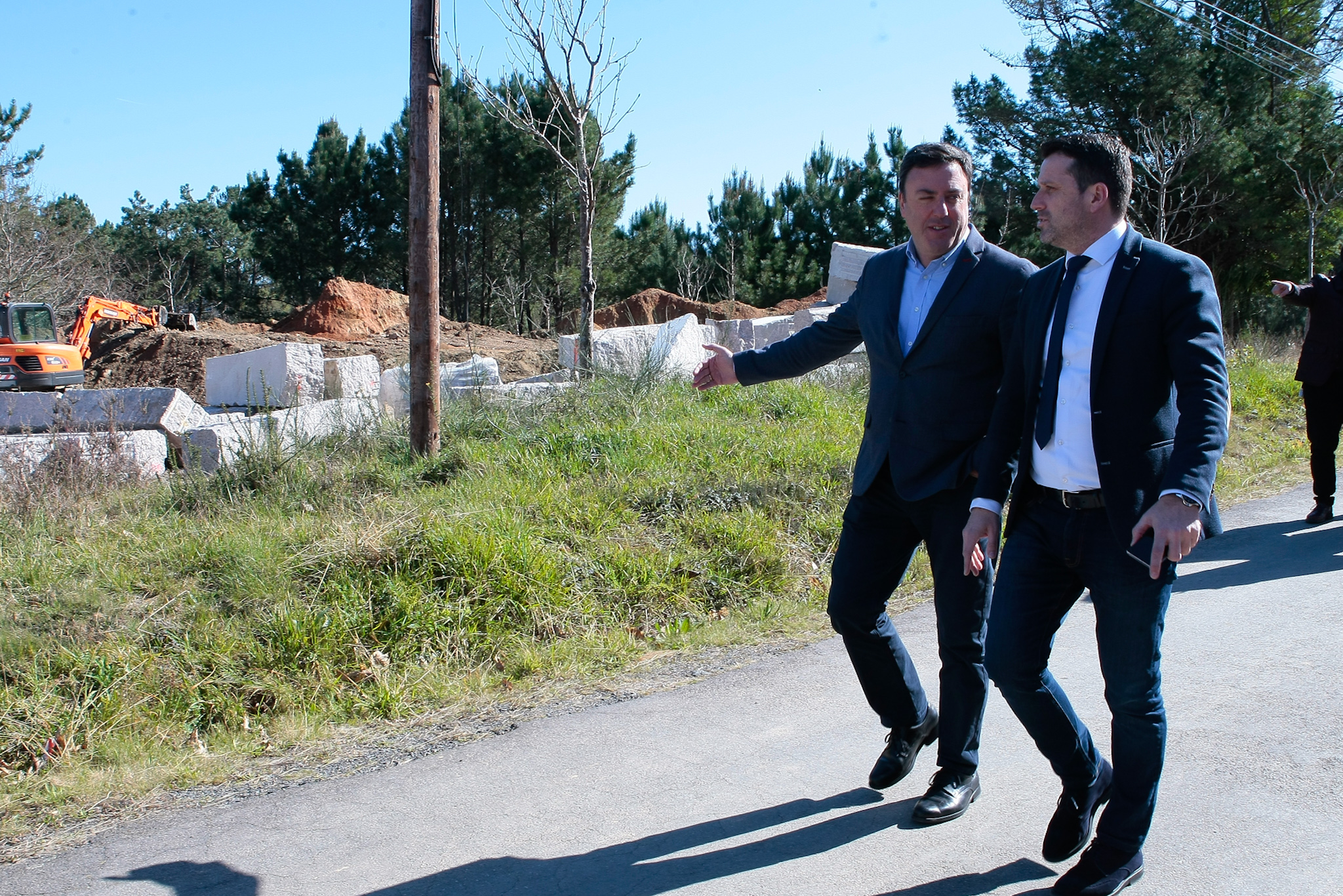 Valentín González Formoso e José Ramón Romero supervisaron hoxe o reinicio dos traballos tras a rescisión do anterior contrato xunto coa deputada provincial Sandra González e o tenente alcalde Luis Ruíz