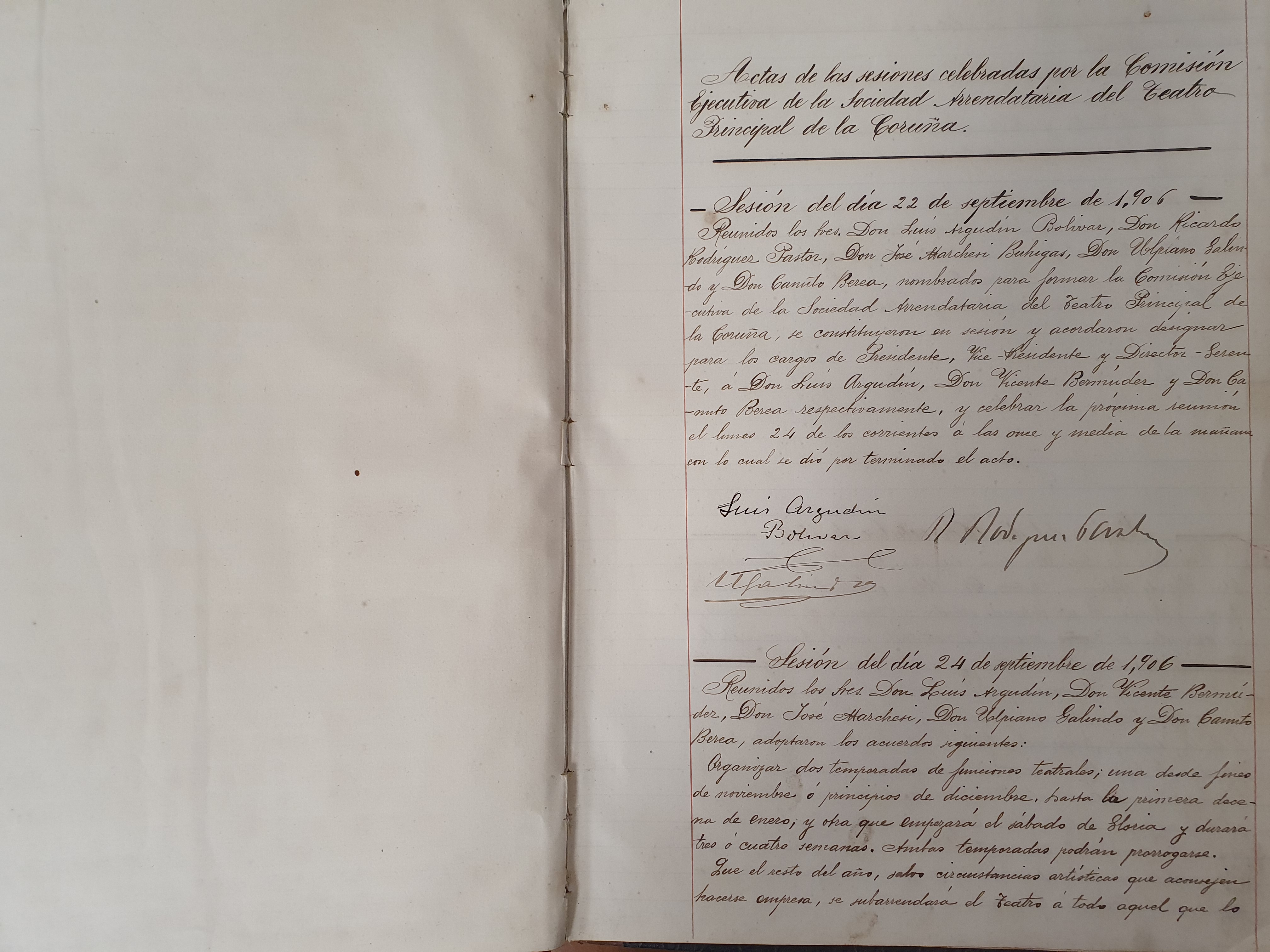 Dentro dos libros podemos atopar: libros copiadores de cartas, de obras dramáticas, de almacén, actas do Teatro Principal, catálogos de partituras, de instrumentos, de rolos de pianola...