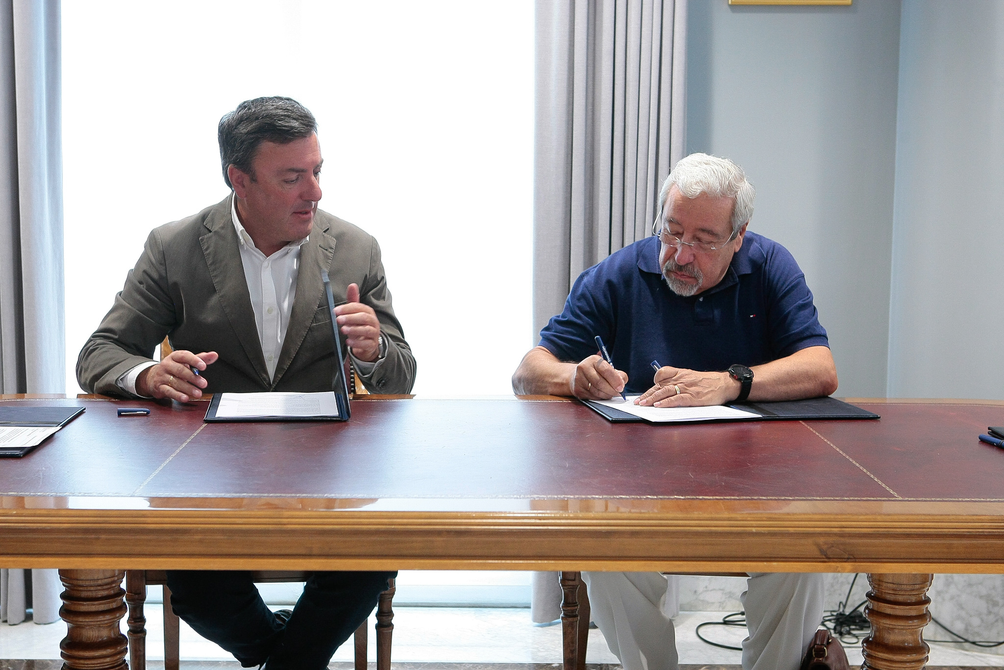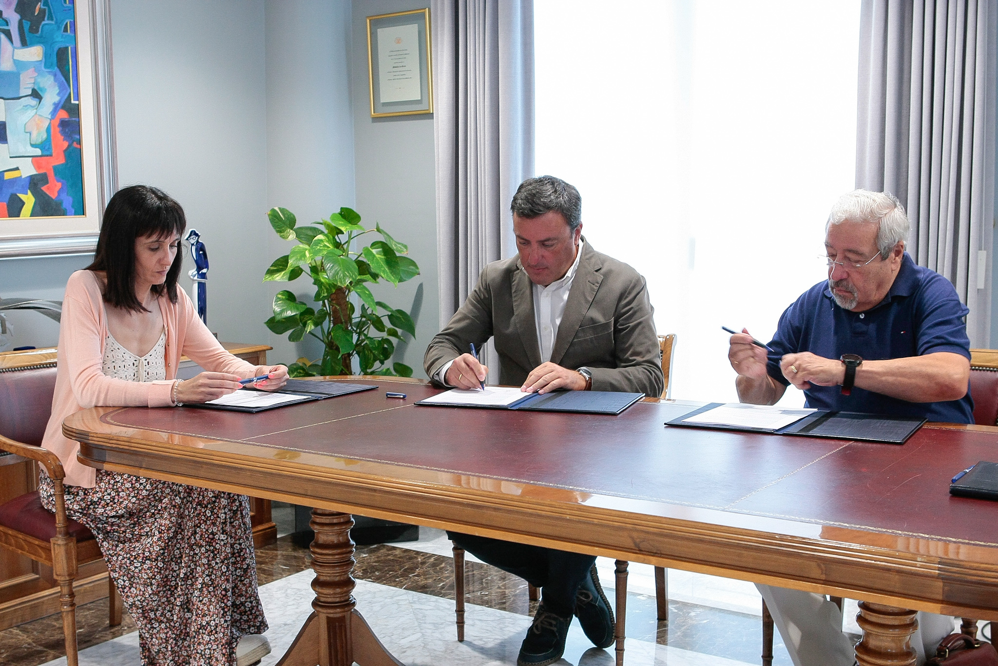 O presidente da Deputación, Valentín González Formoso, e o responsable do Banco de Alimentos de Santiago, José Pita, asinaron hoxe o convenio que ratifica a achega provincial e que supón o 80% do orzamento total que a entidade destina para a compra de alimentos, que ascende a 37.500 euros. No acto participou tamén a deputada de Servizos Sociais Mª del Mar García Vidal.