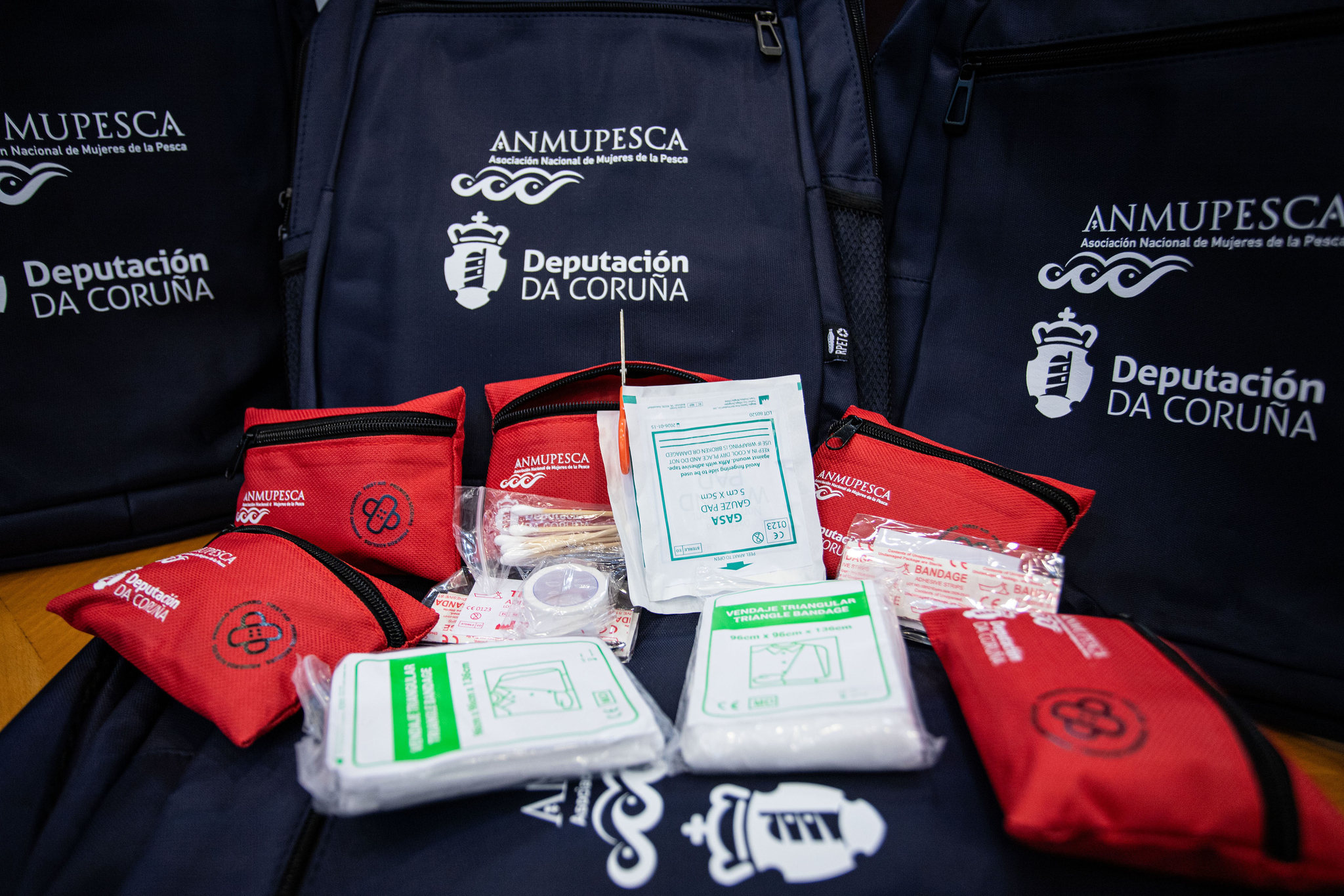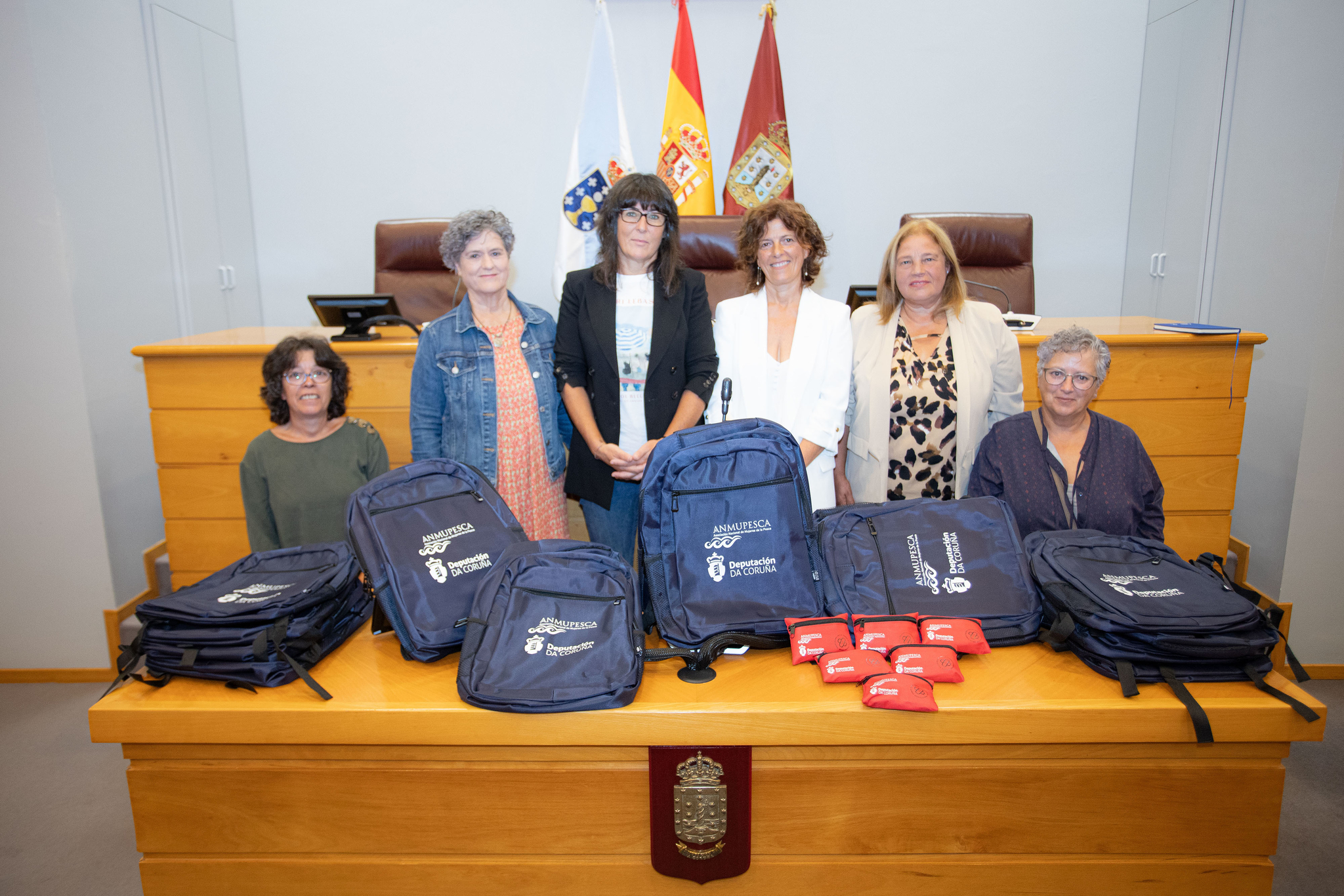 A deputada provincial da área de Emprego, Rosa Ana García, fixo entrega de 300 mochilas impermeables e adaptables, ademais de 300 caixas de primeiros auxilios a mulleres de ANMUPESCA da provincia