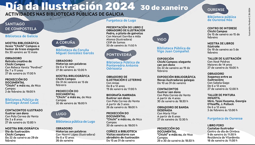 O Día da Ilustración celébrase cada ano o 30 de xaneiro, coincidindo co día do nacemento de Castelao. Ademais de lembrar e reivindicar o papel dos profesionais da ilustración na industria cultural, cada ano é homenaxeado un ilustrador histórico galego. O Día da Ilustración do 2024 está dedicado a Chichi Campos.