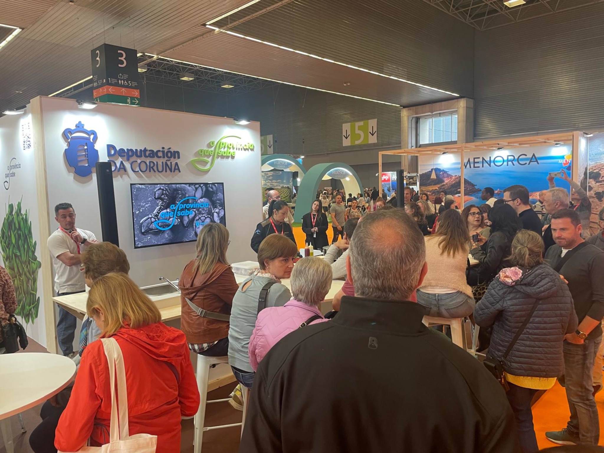 Ferrol e a Costa Ártabra protagonizaron boa parte das actividades, da man de Mariscos de Barallobre e o restaurante Muelle 43, que ofreceron degustacións de navallas, vieiras e zamburiñas, e tamén de pratos tradicionais como o polbo á mugardesa ou a caldeirada de pescada de Cedeira. "Nesta ocasión apostamos por este territorio tan diverso e único, e contamos con produtos que son difíciles de atopar no noso stand, como o marisco, tan identificativos desta zona da provincia", sinalou o vicepresidente.