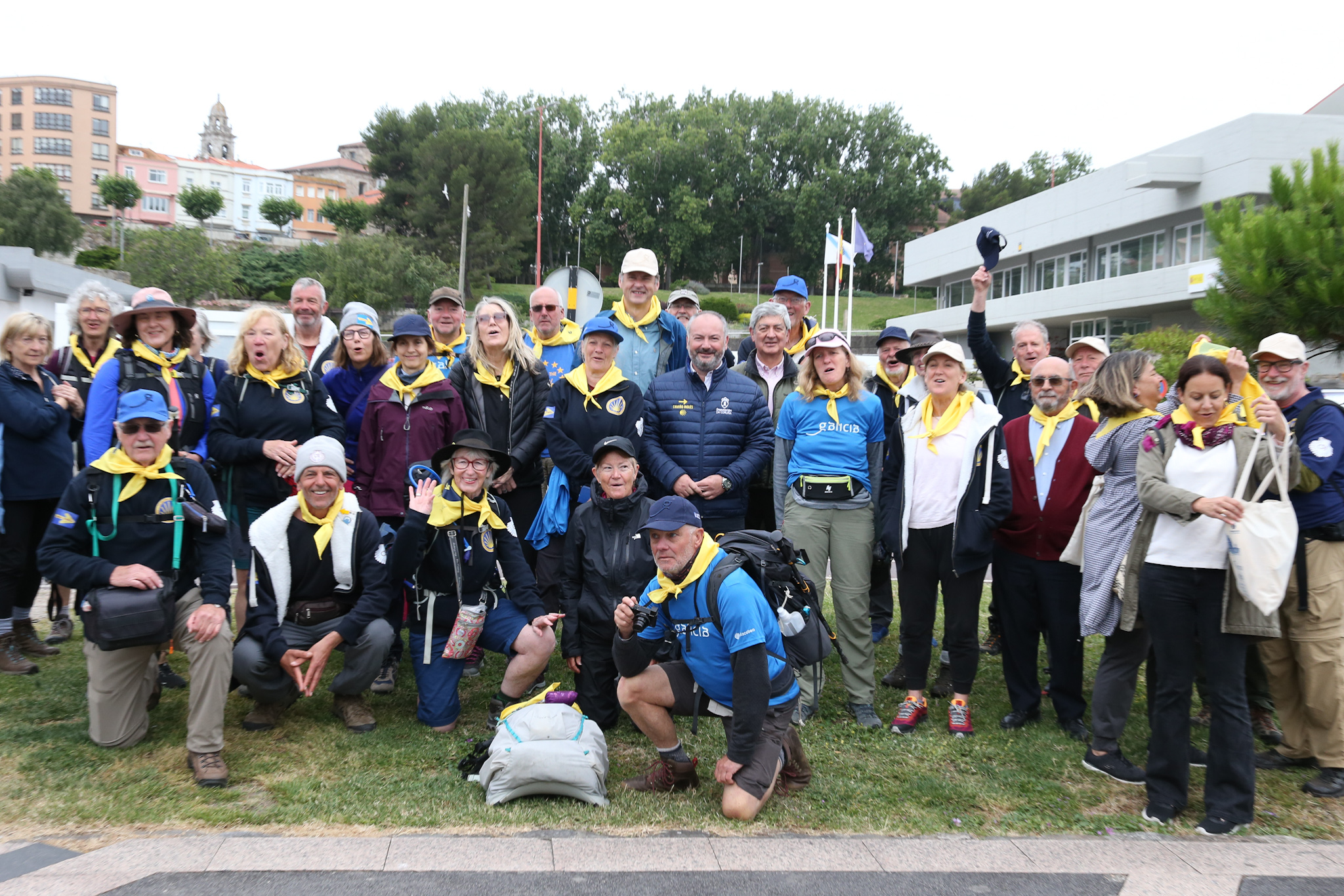 Rioboo e Elliott acompañaron ao grupo nos seus primeiros quilómetros de camiño cara Santiago desde a cidade da Coruña.