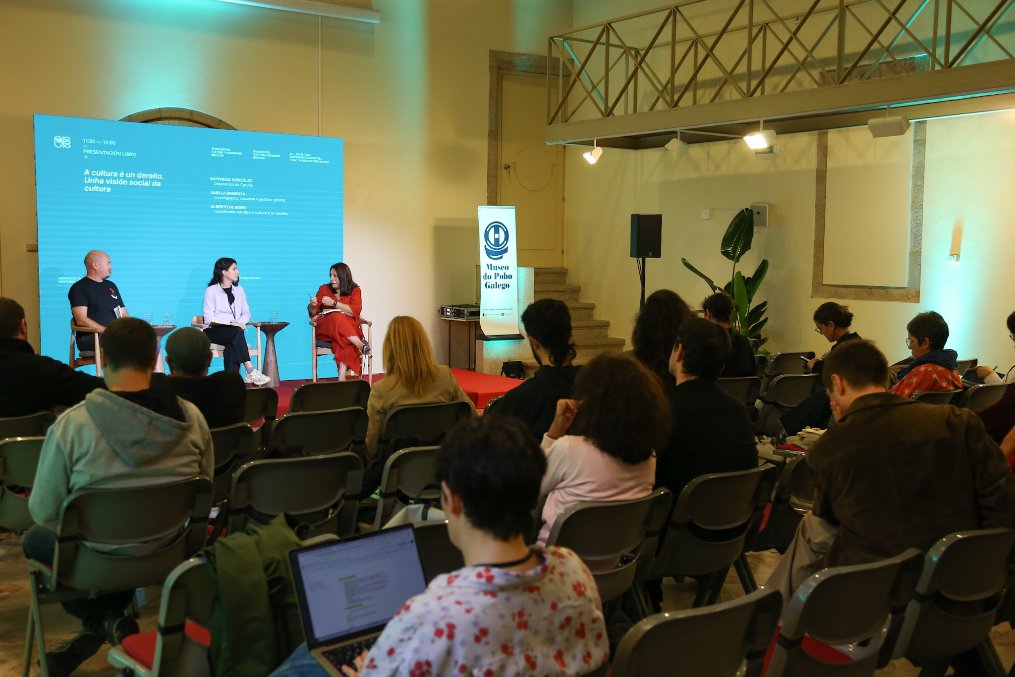 O Museo do Pobo galego acolleu hoxe a presentación do libro A cultura é un dereito. Unha visión social da cultura; unha actividade que se enmarca no programa do 'X Encontro Cultura e Cidadanía' do Ministerio de Cultura, que se está a desenvolver dende onte en Santiago de Compostela. A deputada de cultura, Natividade González, e a investigadora, creadora e xestora cultural, Sabela Mendoza foron as encargadas de presentar a publicación, nunha xornada moderada polo seu coordinador, Alberto de Boiro.
