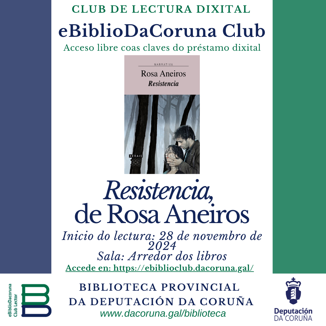 O 28 de novembro temos nova lectura na sala "Arredor dos libros", nesta ocasión compartiremos a obra Resistencia, de Rosa Aneiros.