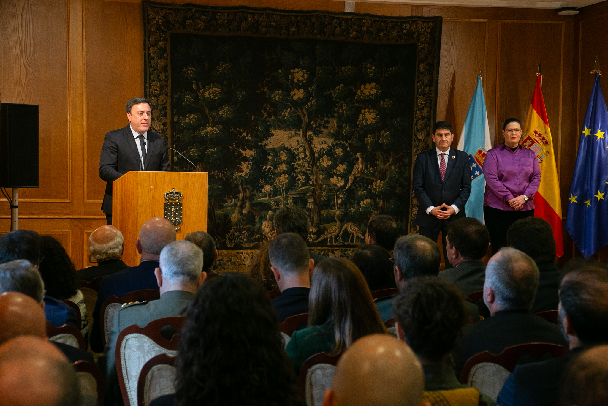O presidente da Deputación da Coruña, Valentín González Formoso, subliñou hoxe, no acto conmemorativo do 46 aniversario da Constitución Española celebrado no Pazo de Mariñán, a vixencia dos valores de diálogo, consenso e convivencia que inspiraron a Carta Magna de 1978. Nun momento de crecente crispación política, chamou a recuperar o "espírito do 78" como guía para afrontar os retos do futuro.