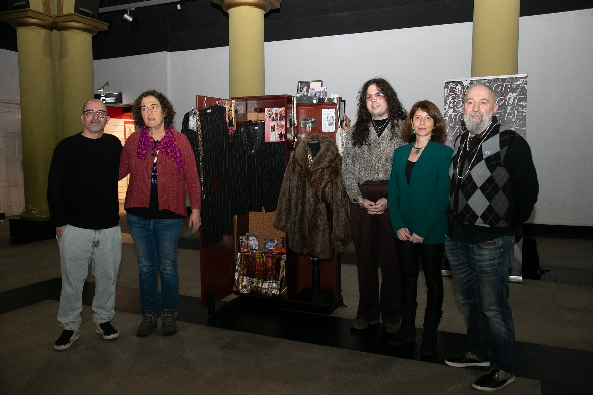 'Relembrando a Trini', aberta ata o 15 deste mes, artéllase arredor dun armario onde se ordenan obxectos persoais de Falcés —fotos, roupa, bixutería— e documentos como entrevistas ou os certificados dos seus ingresos nas cárceres franquistas pola súa condición cuir. O visitante poderá percorrer a instalación para reconstruír a figura e vida de Trini: prostituta, artista e, sobre todo, símbolo da loita pola integración e a diversidade sexual. Figura destacada na primeira marcha LGBT do estado español —que se celebrou en 1977 en Barcelona, cidade na que residiu durante tres décadas—, presa cinco anos —deles, dúas veces e máis de cinco meses nun campo de concentración de homosexuais en Badajoz—, Falcés recibiu en 2019 o premio Marcela e Elisa, que concede a asociación ALAS, e faleceu na Coruña en agosto de 2022.
