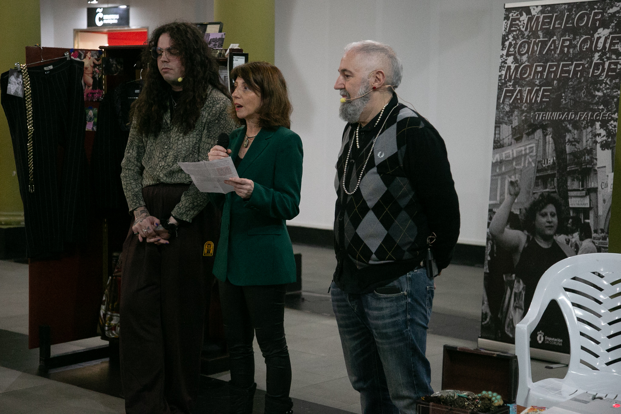 A Biblioteca Municipal Durán Loriga, da Coruña, acolleu esta tarde a inauguración da exposición 'Relembrando a Trini', unha iniciativa da área de Igualdade da Deputación da Coruña para homenaxear a Trinidad Falcés, histórica activista trans coruñesa, pioneira e figura esencial na loita polos dereitos do colectivo LGBT. Interviron no acto a deputada de Igualdade, Sol Agra; o comisario da mostra, Sergio Marey, e Fito Ferreiro, da Asociación Palestra.