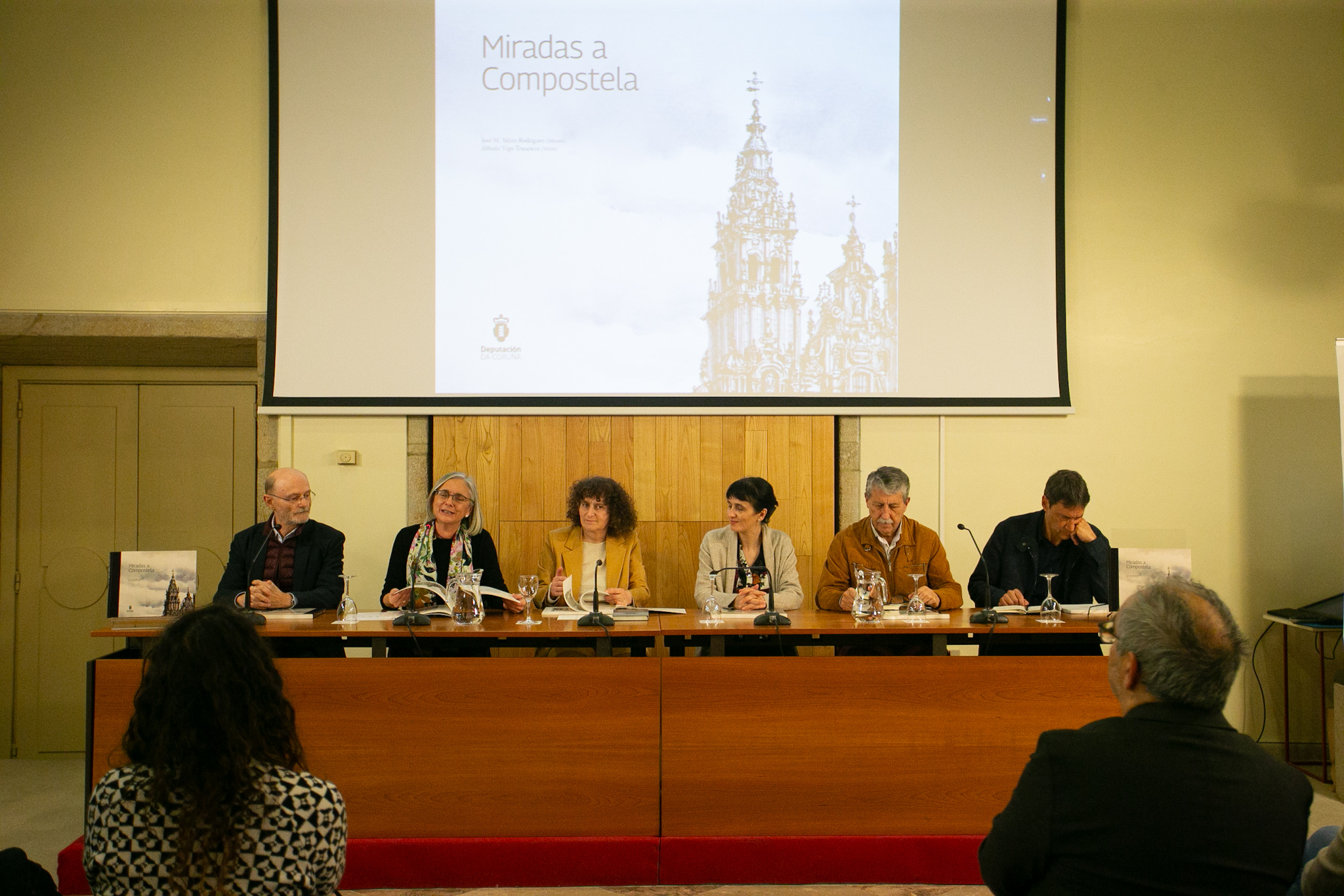 No acto de presentación participaron a deputada provincial Mar García Vidal, a alcaldesa de Santiago, Goretti Sanmartín, o profesor da USC e prologuista do libro, Jesús Ángel Sánchez García, a presidenta do padroado do Museo do Pobo Galego, Concha Losada Vázquez, e os autores da obra.