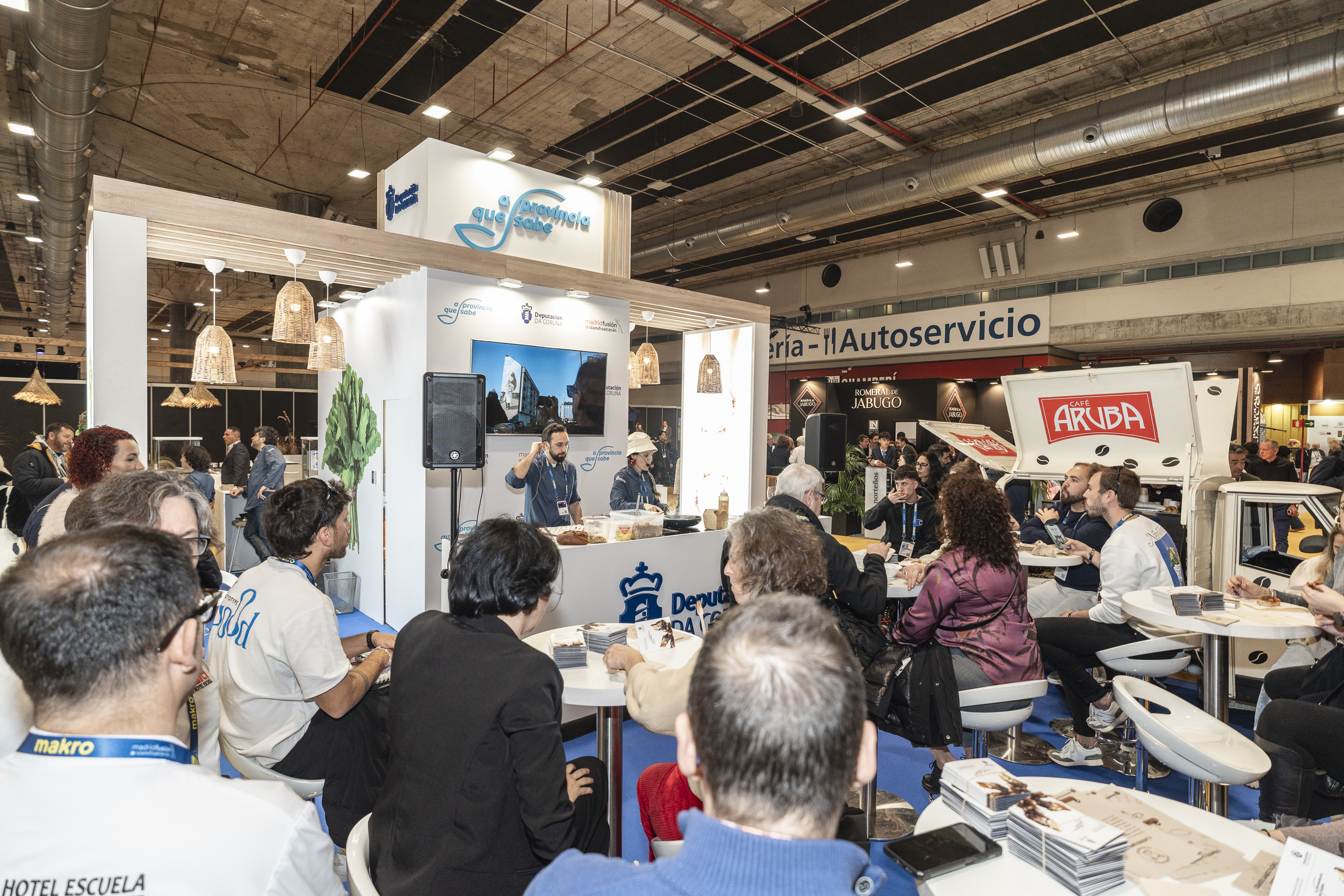 Shocookings de Luís Veira (Árbore da Veira), Beatriz Sotelo (Illas Gabeiras), Fabián Mouzo (O Camiño Fala), o cociñeiro portugués Hélio Loureiro e Álvaro Victoriano (Grupo Peculiar); degustacións, presentacións e catas de A Conserveira, empanadas Ternura, A Despensa d'Lujo, Cafés Aruba, San Isidro Bakery, Queixo Galmesán, Chichalovers, queixos da DOP Arzúa – Ulloa e relatorios de Luís Paadín sobre os viños coruñeses foron as máis de 30 actividades que formaron a programación da Deputación en Madrid Fusión nun stand que tamén contaba con mostradores de exposición permanente para San Isidro Bakery, Empanadas Ternura, Bonilla a la vista, Chichalovers, A Conserveira e A Despensa d´Lujo.