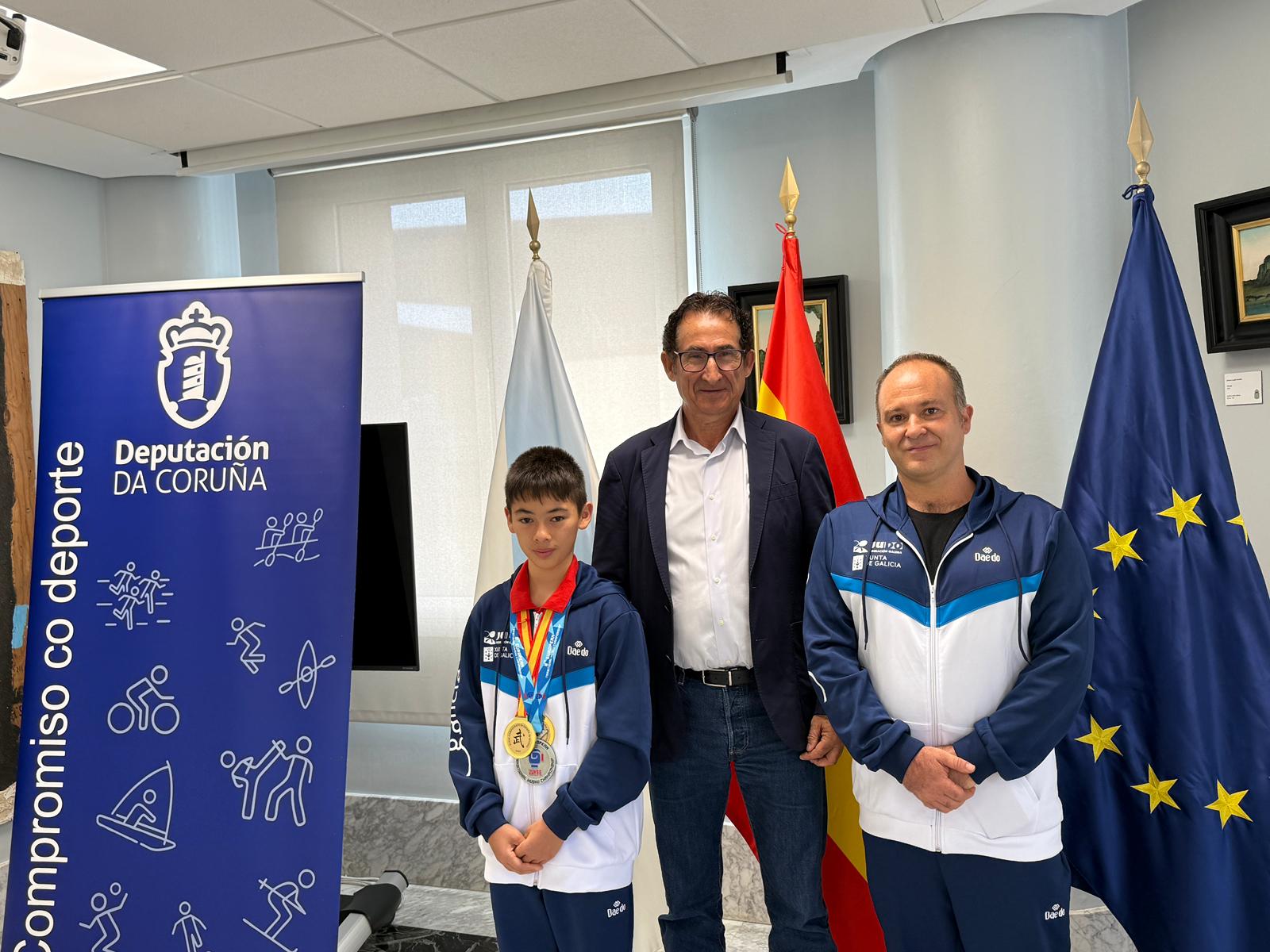 O deputado de Deportes, Antonio Leira, recibiu no pazo provincial ao subcampeón de Europa de kung fu na categoría de 12 a 14 anos, Erik Martín. O rianxeiro, o único galego que participou no Europeo celebrado en Grecia, acadou a prata nun torneo no que participaron preto de 500 deportistas de 20 países.