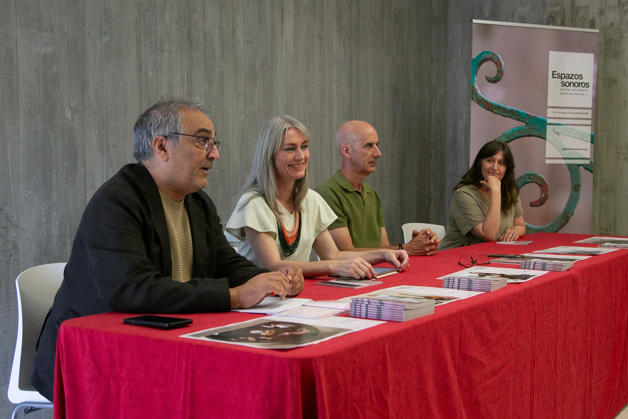 Co lema "Escoitar con asombro, alento da memoria", presentouse esta mañá no Centro Etnográfico de Teixeiro (Curtis) unha nova edición de Espazos Sonoros, o ciclo organizado polo departamento de Patrimonio e Contratación da Deputación da Coruña no que se dan a man a música antiga e o patrimonio cultural e arquitectónico da provincia. Na rolda de prensa interviron o deputado de Patrimonio, Xosé Penas; a directora artística do festival, Belén Bermejo, e o alcalde de Curtis, Javier Francisco Caínzos, quen deron paso á actuación musical de Maria José Pámpano, de Suelen Estar Quartet, unha das formacións protagonistas este ano.