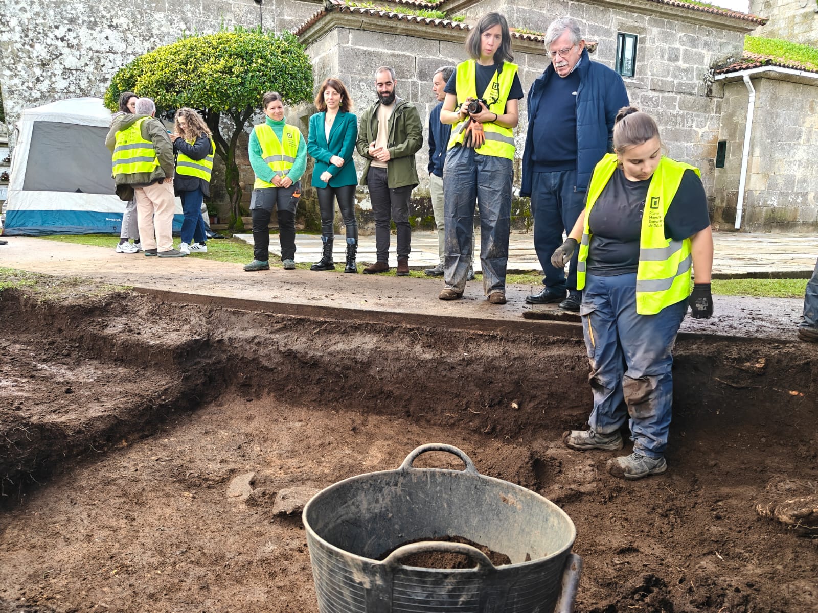 A titular da área de dereitos civís da Deputación da Coruña, Sol Agra, visitou esta mañá os traballos de exhumación de Manuel Piñeiro e Francisco López, dous barbanceses fusilados en 1936, acompañada do alcalde, Julián Bustelo, e de representantes da Comisión pola Recuperación da Memoria Histórica do Barbanza.