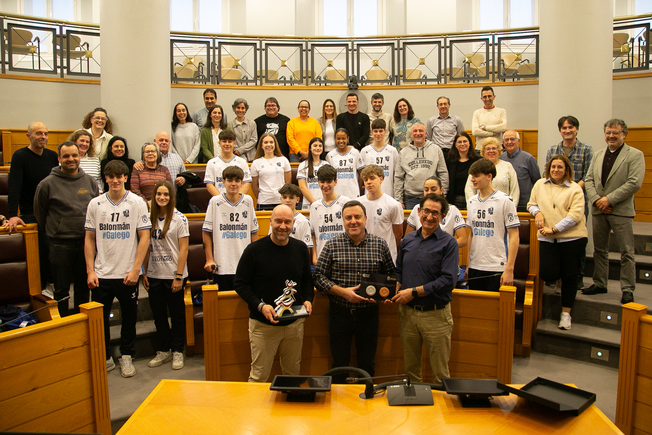 O presidente da Deputación da Coruña, Valentín González Formoso, e o deputado de Deportes da Deputación da Coruña, Antonio Leira, recibiron na tarde de onte na sede da institución provincial ás e aos 14 deportistas da provincia que formaron parte das seleccións galegas no Campionato de España de Seleccións Autonómicas (CESA) 2026, acadando un dos mellores resultados da historia recente do balonmán galego nesta competición.