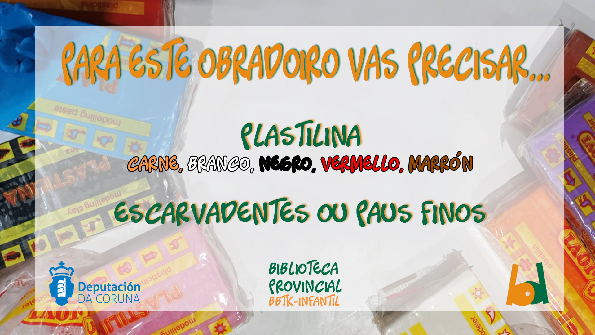 Obradoiro de plastilina : material que ides precisar para o Obradoiro de plastilina de venres 14 de maio