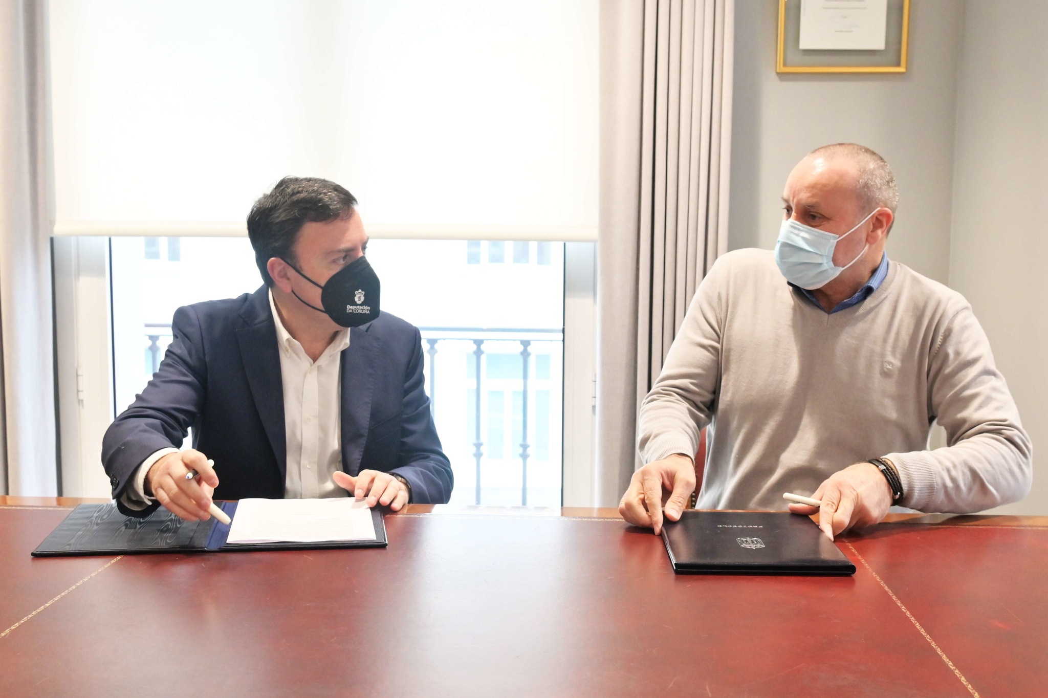 O presidente da Deputación da Coruña, Valentín González Formoso, e o vicepresidente de COGAMI, Ramón Sestayo, reuníronse esta mañá na sede da institución provincial para reforzar a colaboración entre ambas entidades.