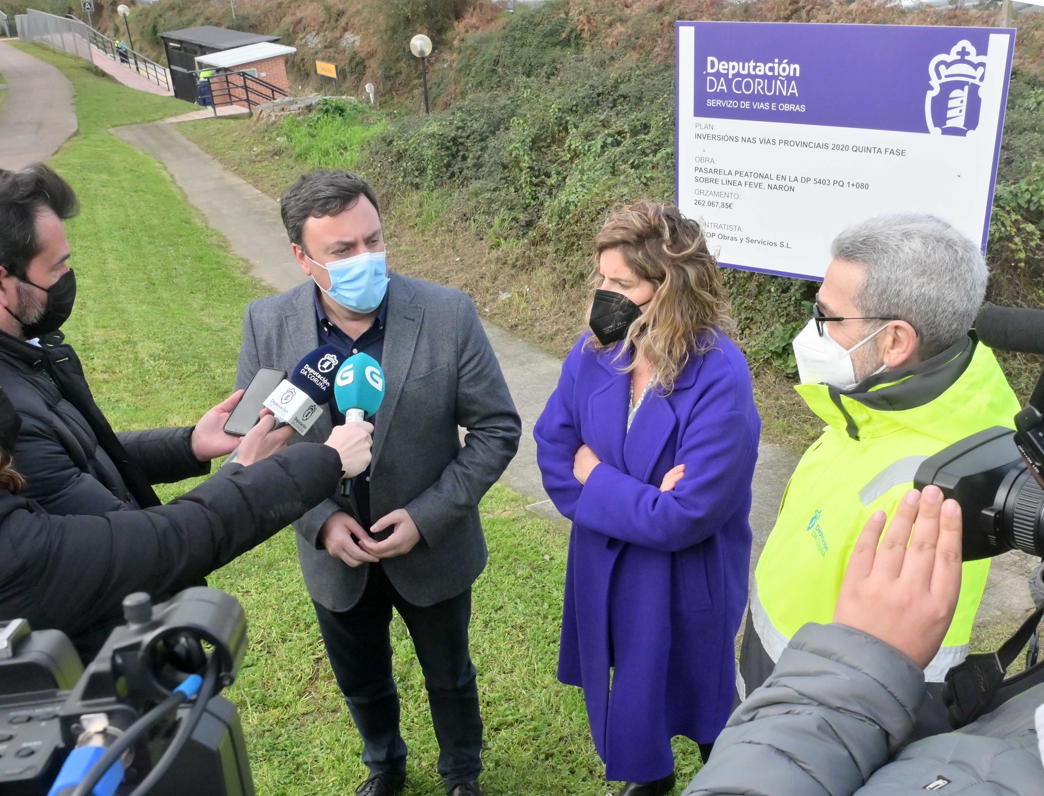 O presidente, que avaliou a marcha dos traballos acompañado da alcaldesa de Narón, Marián Ferreiro, destacou que "esta pasarela responde a unha demanda veciñal e institucional de hai décadas e permitirá garantir unha maior seguridade viaria para os milleiros de transeúntes que pasan por enriba desta vía de tren". Formoso manifestou a colaboración permanente do Concello e da cidadanía e agradeceu a esta última a "paciencia durante a espera e agora durante as molestias que poidan xurdir coas obras".
