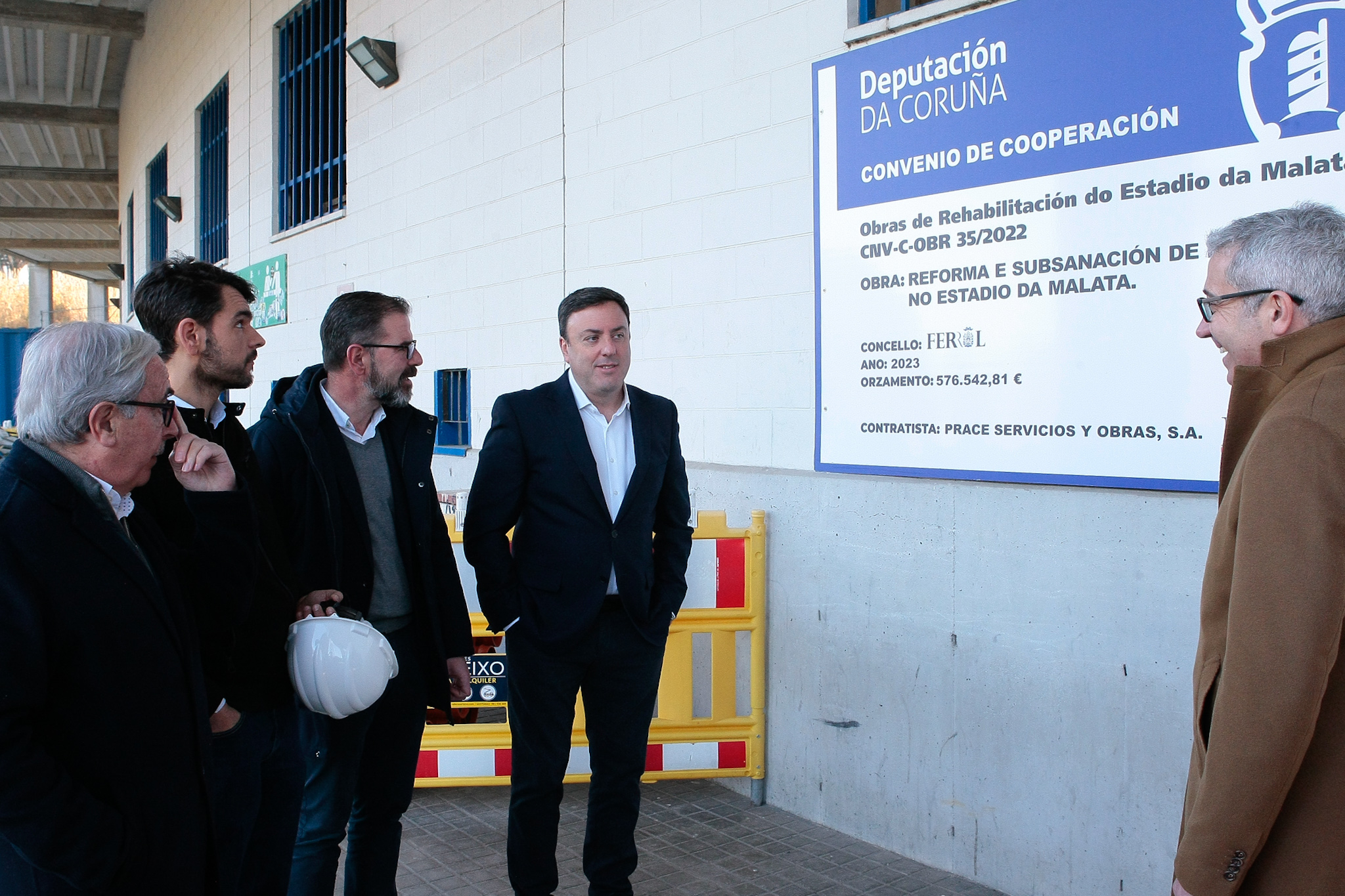 O presidente da Deputación da Coruña, Valentín González Formoso, visitou esta mañá o estadio da Malata xunto co alcalde de Ferrol, Ángel Mato, e o presidente do Rácing de Ferrol, José María Criado, para supervisar o avance das obras de rehabilitación da bancada norte do recinto deportivo.