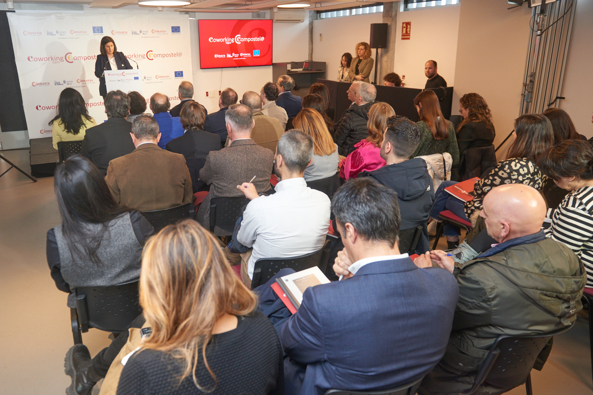 O evento foi inaugurado polo alcalde de Santiago, Xosé Sánchez Bugallo, e María Pais Fajín, presidenta da Cámara, quen destacou que o CCompostela é un proxecto global, que porá a disposición de empresas e persoas emprendedoras un espazo coworking con equipamento tecnolóxico e programas específicos de acompañamento, incubación e aceleración de empresas, ademais de todos os servizos que a Rede Provincial de Coworking da Deputación oferta a todas as persoas usuarias.