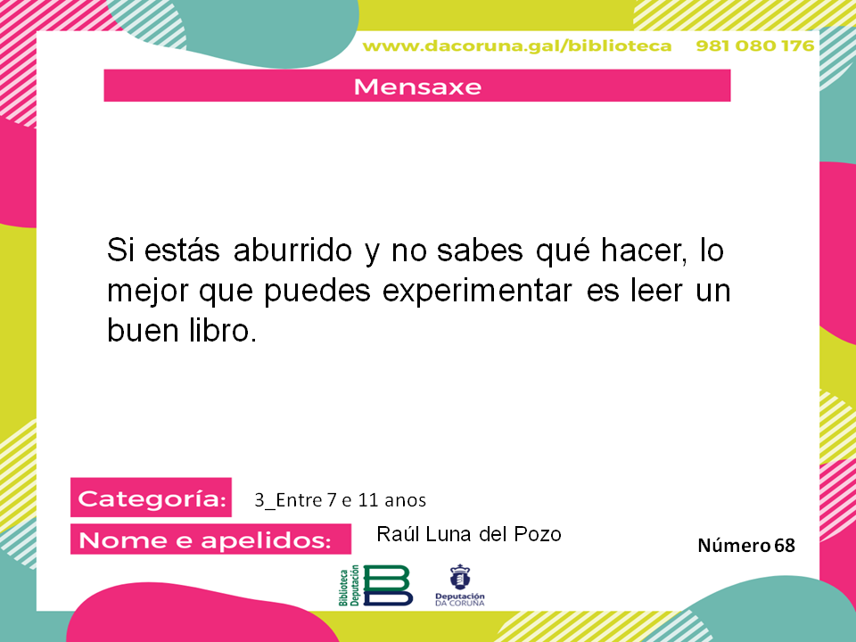 "Si estás aburrido y no sabes qué hacer, lo mejor que puedes experimentar es leer un buen libro."