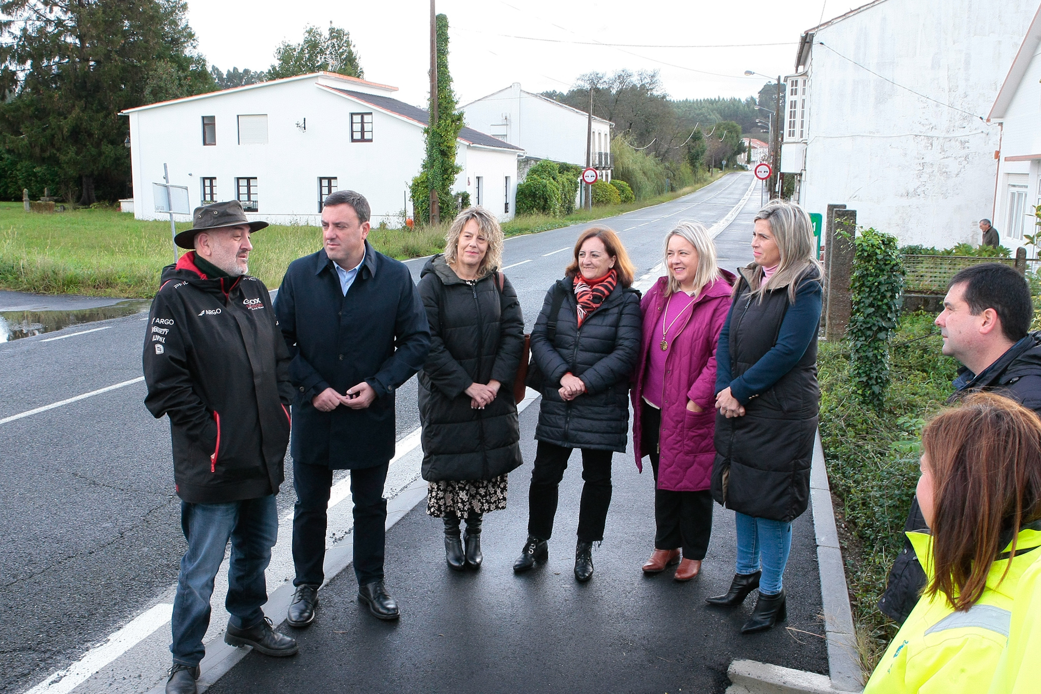O presidente da Deputación da Coruña, Valentín González Formoso, o alcalde de Ares, Julio Iglesias Redondo, e a deputada responsable da área de Vías e Obras, Mónica Rodríguez, acompañados por técnicos do departamento provincial de estradas e concelleiras do goberno municipal visitaron hoxe distintas obras financiadas pola Deputación no municipio, entre elas, a senda peonil que conecta Ares e Redes e a derradeira fase da ampliación e mellora da estrada Ares-Chanteiro.