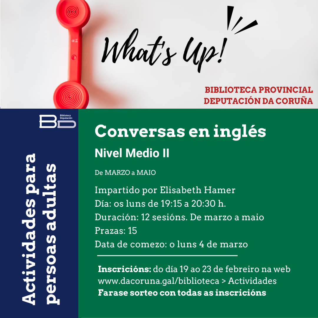 Conversas en inglés de nivel medio dentro da programación de actividades de primavera da Biblioteca