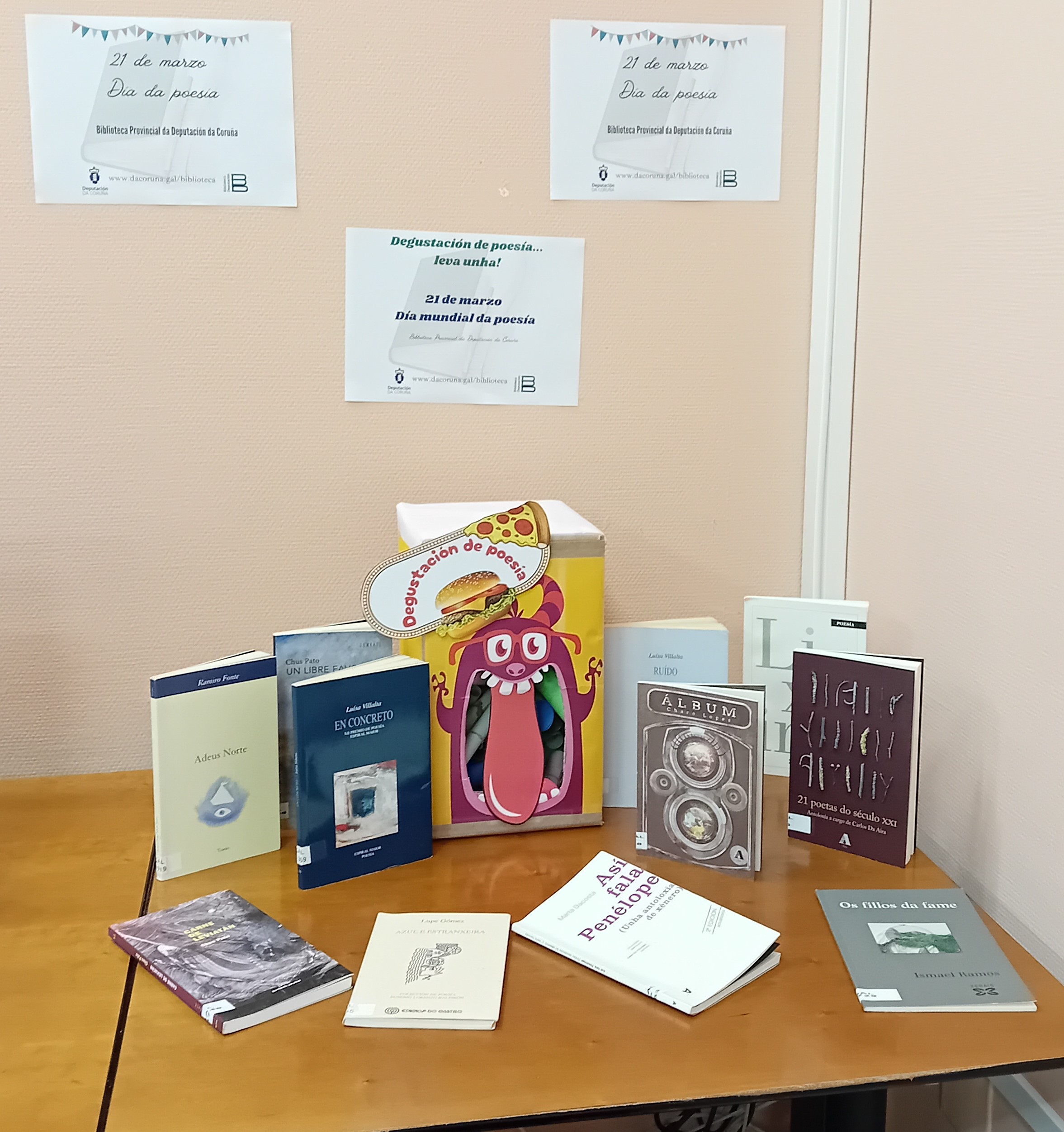 - Recuncho temático: cunha seleción de libros de poesía que podes atopar no servizo de préstamos.