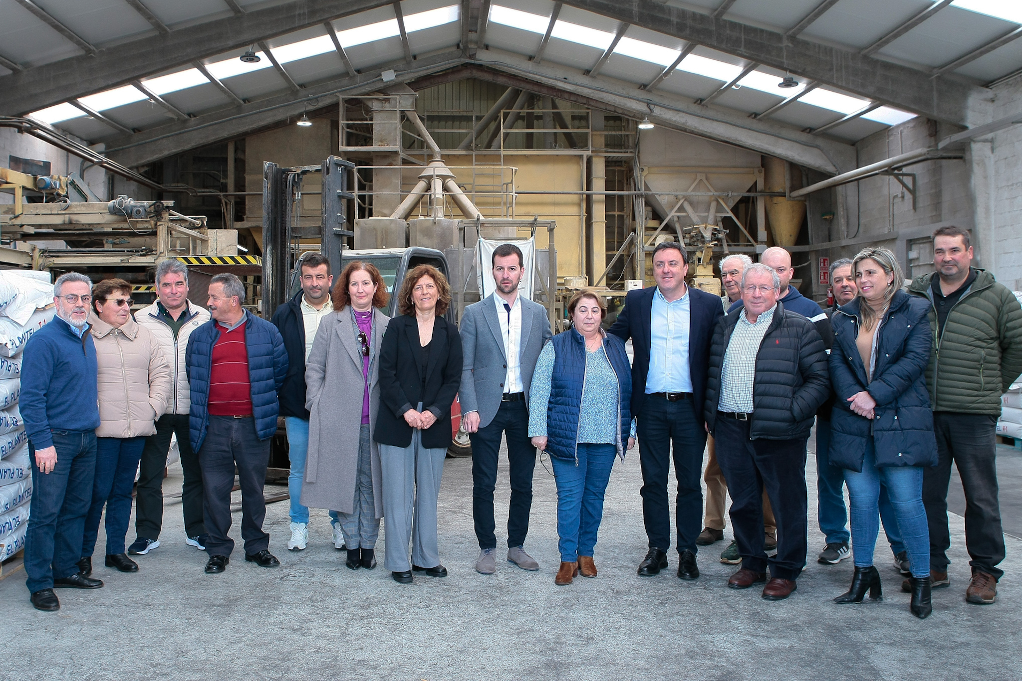 O presidente da Deputación da Coruña, Valentín González Formoso, acompañado do alcalde de Paderne, Sergio Platas, e das deputadas de Vías e Obras e Emprego, Mónica Rodríguez e Rosa Ana García, visitou esta mañá a cooperativa El Plantel Comarcal de Betanzos, onde foi recibido polo presidente da entidade, Juan Novo Novo, e a xerente, Carmen García e máis dunha decena de socios e membros da xunta directiva, que explicaron a actividade da empresa.
