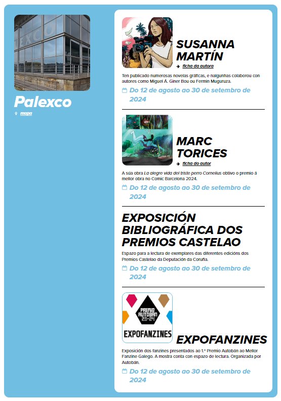 Ata finais de setembro podedes visitar as exposicións que forman parte do evento.