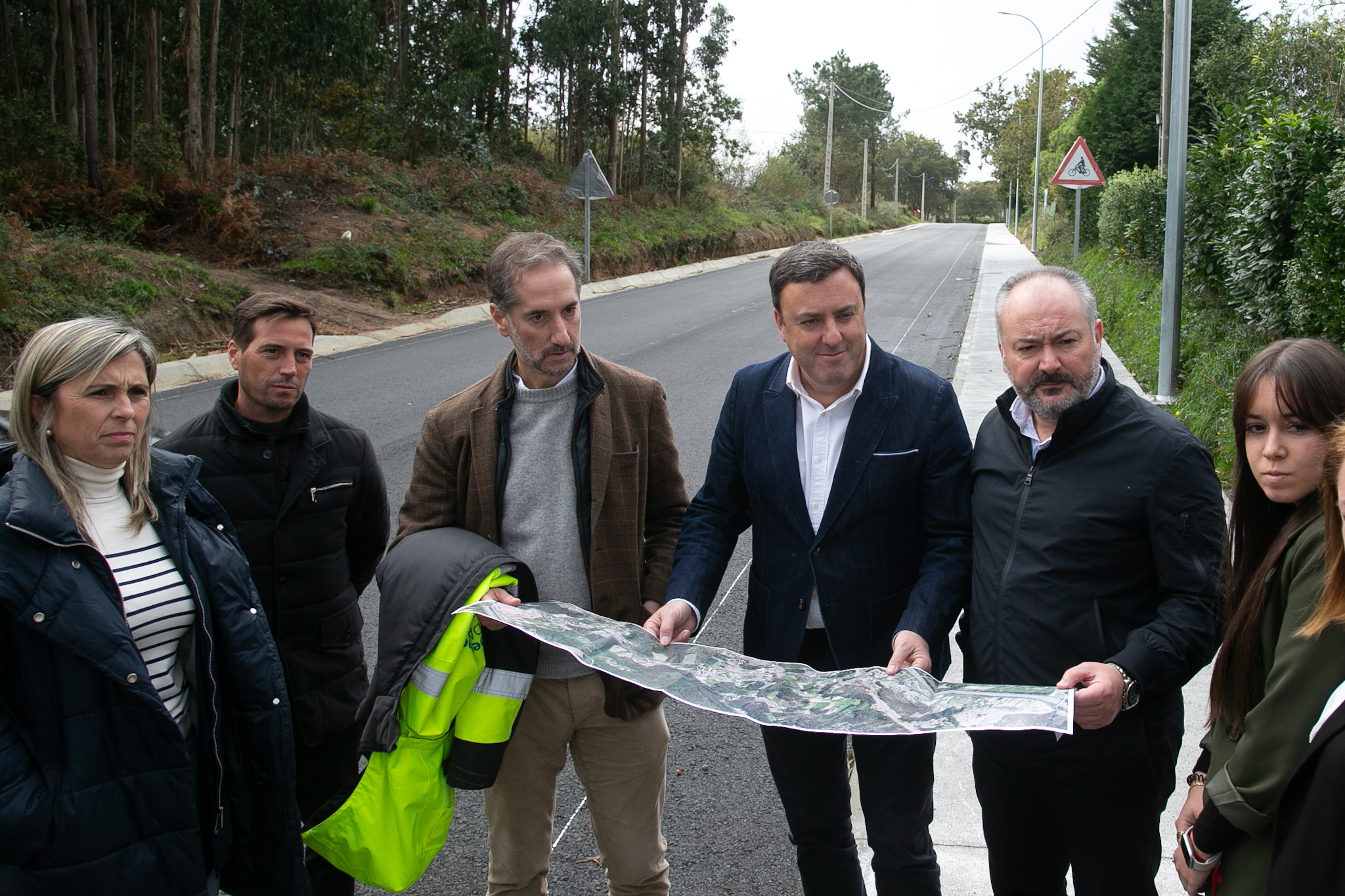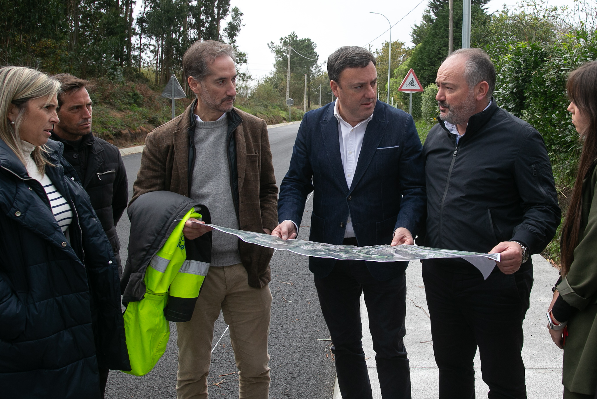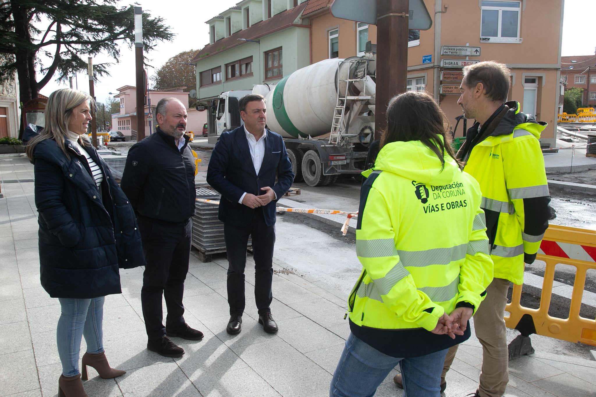 O presidente da Deputación da Coruña, Valentín González Formoso, e o alcalde de Culleredo e deputado provincial, José Ramón Rioboo, e a deputada de Vías e Obras, Mónica Rodríguez, visitaron hoxe distintas obras de mellora da rede viaria provincial no municipio cullerdense.