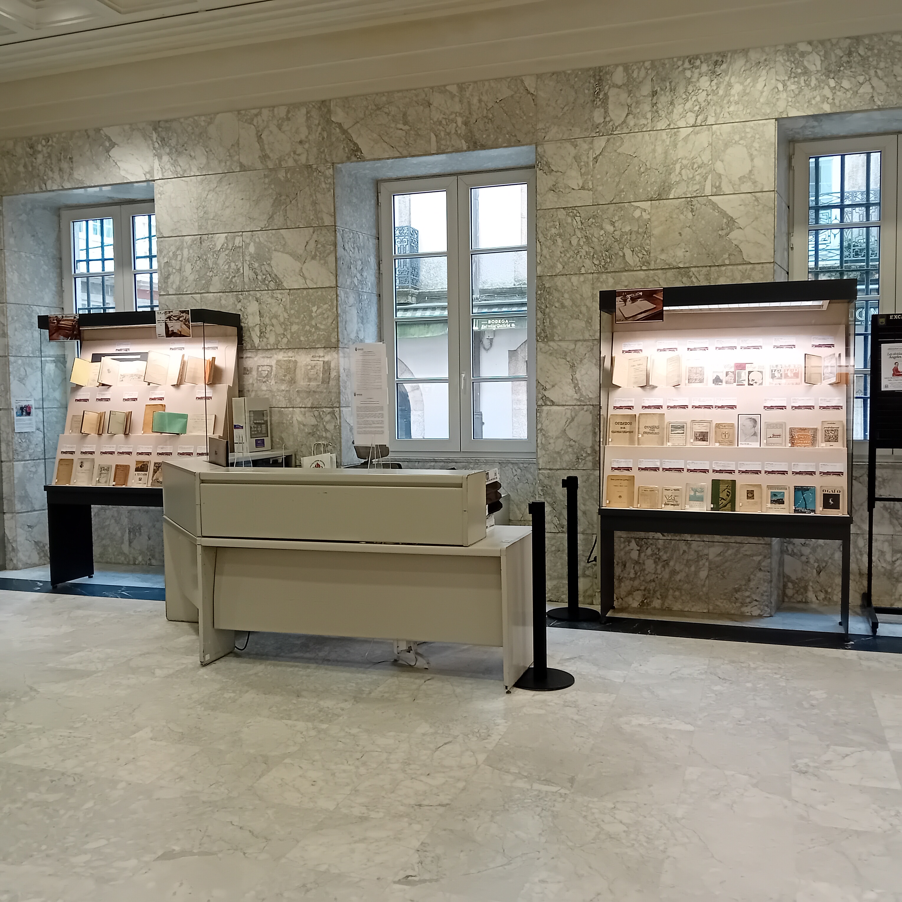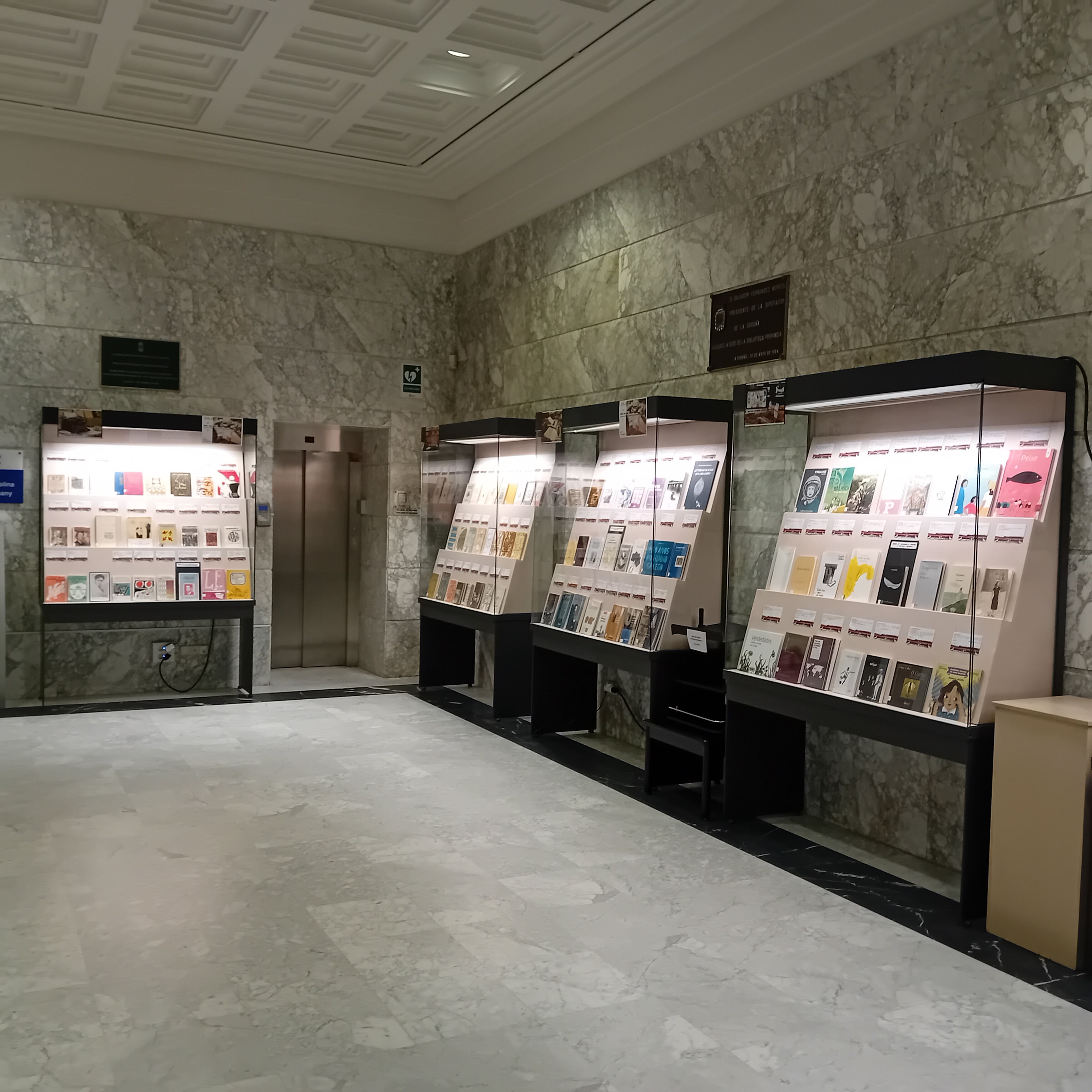 A través de sete vitrinas, exhíbese unha selección de editoriais coruñesas e dalgunhas das súas obras, ofrecendo unha visión sintética da súa actividade. Cada unha delas ocúpase dunha etapa da produción editorial coruñesa, reflectindo a súa evolución histórica.