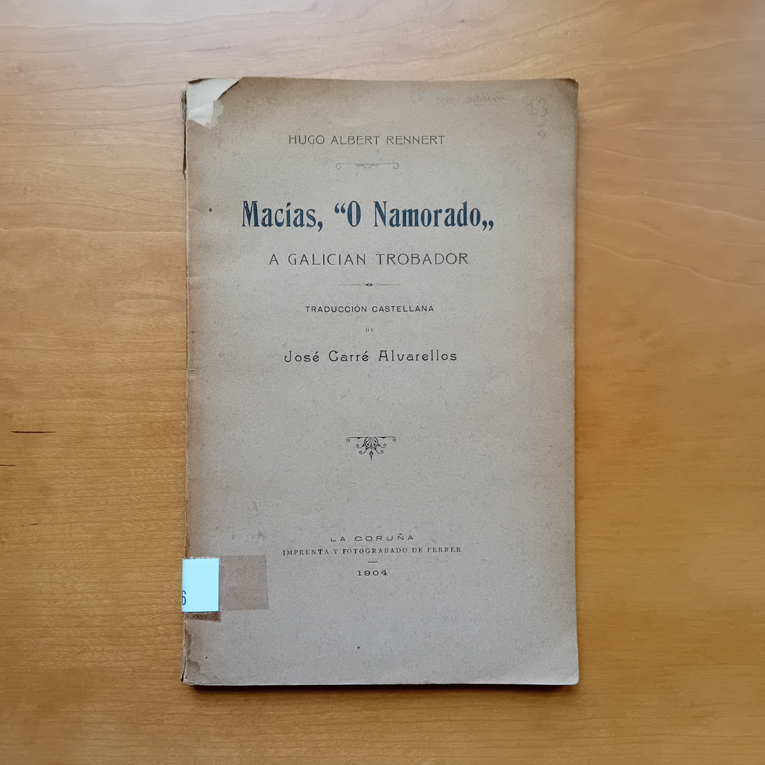 A primeira delas, destaca por tratarse dunha tradución ao castelán do estudo Macias, O Namorado: a galician trobador, publicado en 1900 polo hispanista estadounidense Hugo Albert Rennert. Rennert foi profesor de linguas románicas e literatura na Universidade de Pennsylvania e membro correspondente da Real Academia Española, da Real Academia Galega e da Hispanic Society of America. O responsable da tradución, con apenas dezaoito anos, foi José Carré Alvarellos (1884-1904). Fillo do historiador e editor coruñés Eugenio Carré Aldao, José graduouse na Escola Superior de Comercio e colaborou no Diccionario Gallego-Castellano de Marcial Valladares, aportando anotacións de vocábulos e sinónimos que el mesmo recolleu. Este libro saíu do prelo trala prematura morte de José, sendo o estudo publicado con anterioridade no xornal lucense La Idea Moderna.