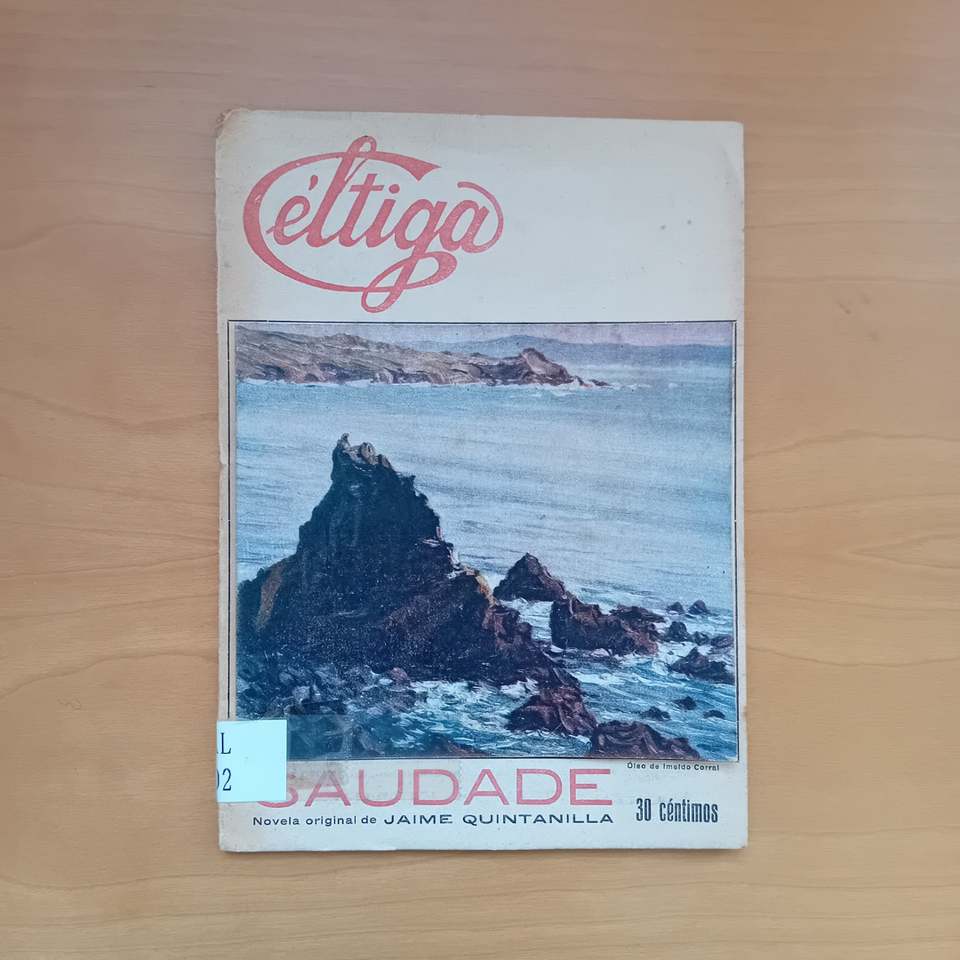 O primeiro número publicado na colección Céltiga é Saudade, unha novela escrita polo propio Xaime Quintanilla, de prosa poética e temática costumista. A imaxe da portada pertence a un óleo do pintor ferrolán Imeldo Corral, un artista no que a paisaxe e natureza galegas son temas fundamentais.
