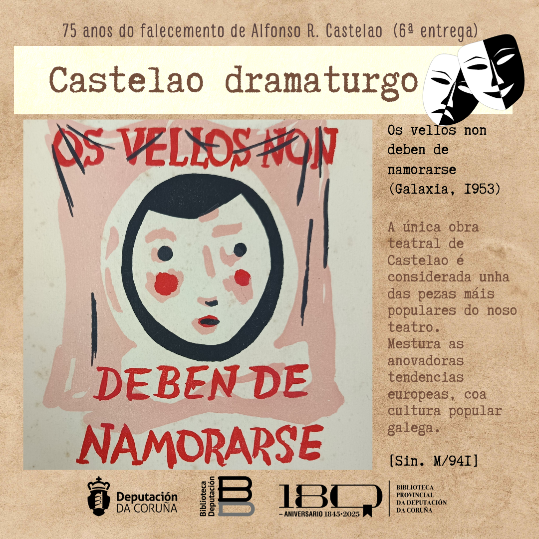 Castelao só escribiu unha obra de teatro, Os vellos non deben de namorarse, unha comedia que conta os amores tardíos de tres vellos con tres mozas novas, e que incorporaba tendencias anovadoras do teatro europeo xunto coa tradición popular galega.