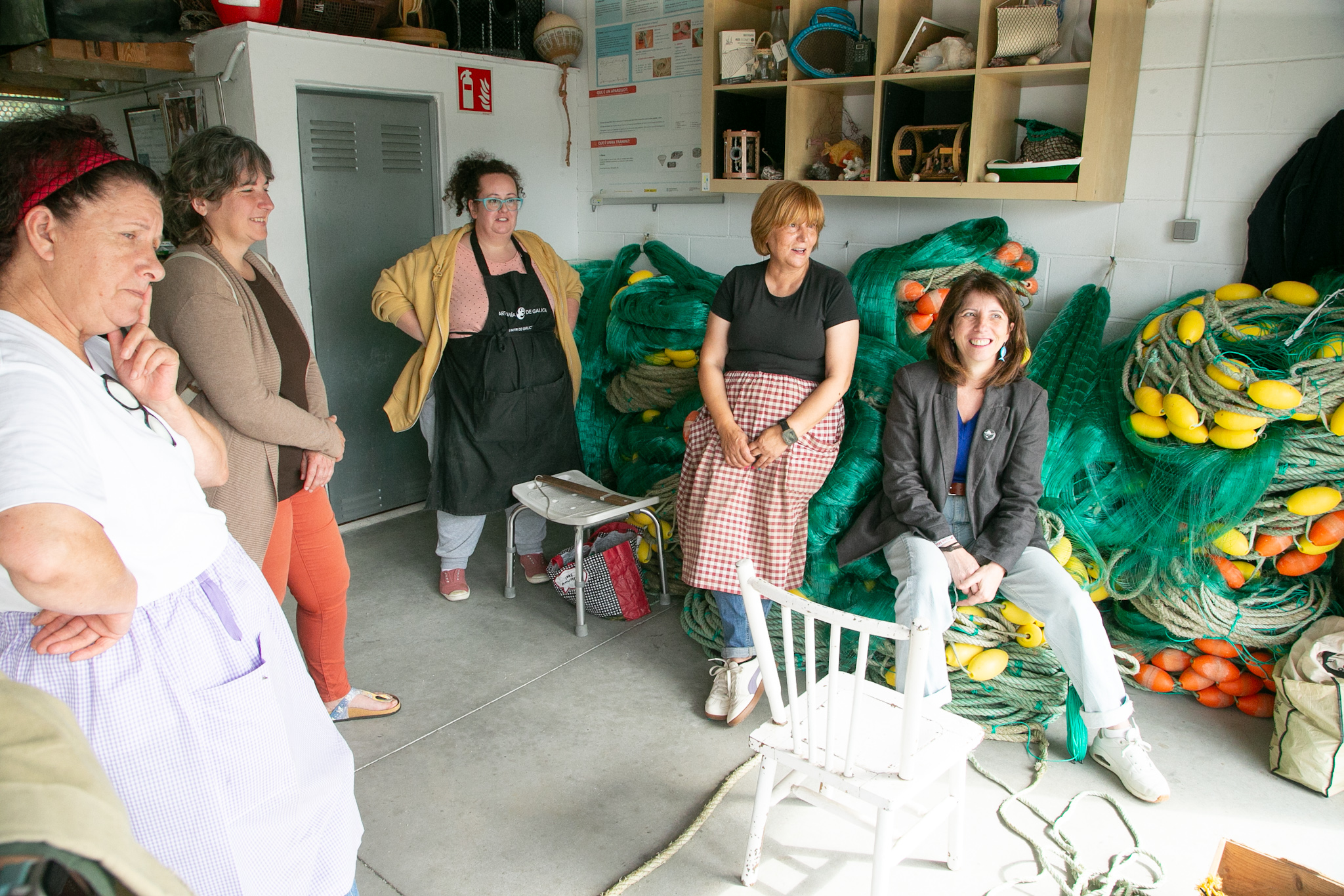 A deputada escoitou as demandas en canto a condicións laborais e todas as problemáticas dun colectivo de mulleres "herdeiras dunha tradición viva, que leva séculos mantendo o mar unido á terra" e deulles as grazas "polo voso labor, e por acollernos e abrirnos as portas das vosas casas, dos vosos portos e, sobre todo, do voso saber".