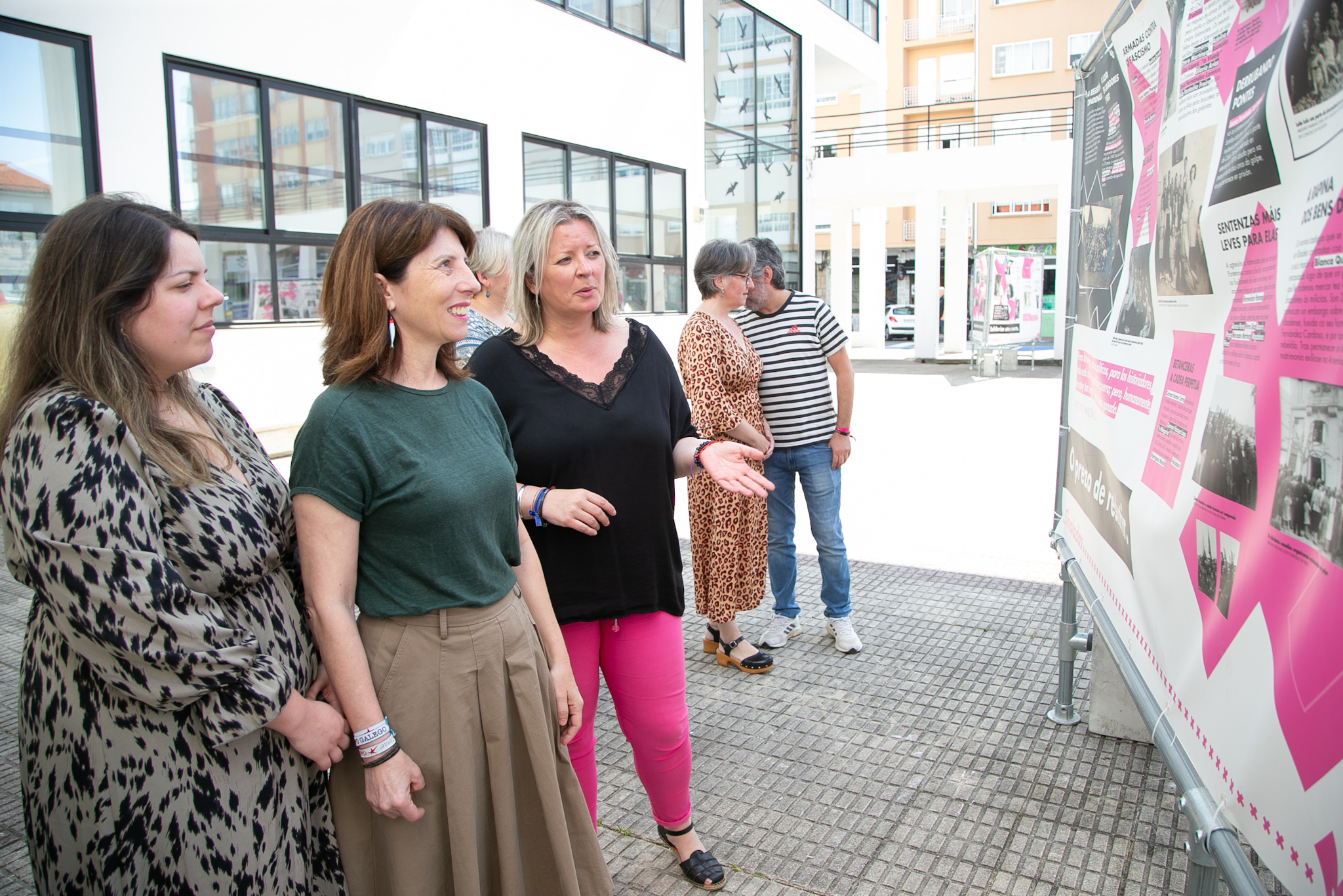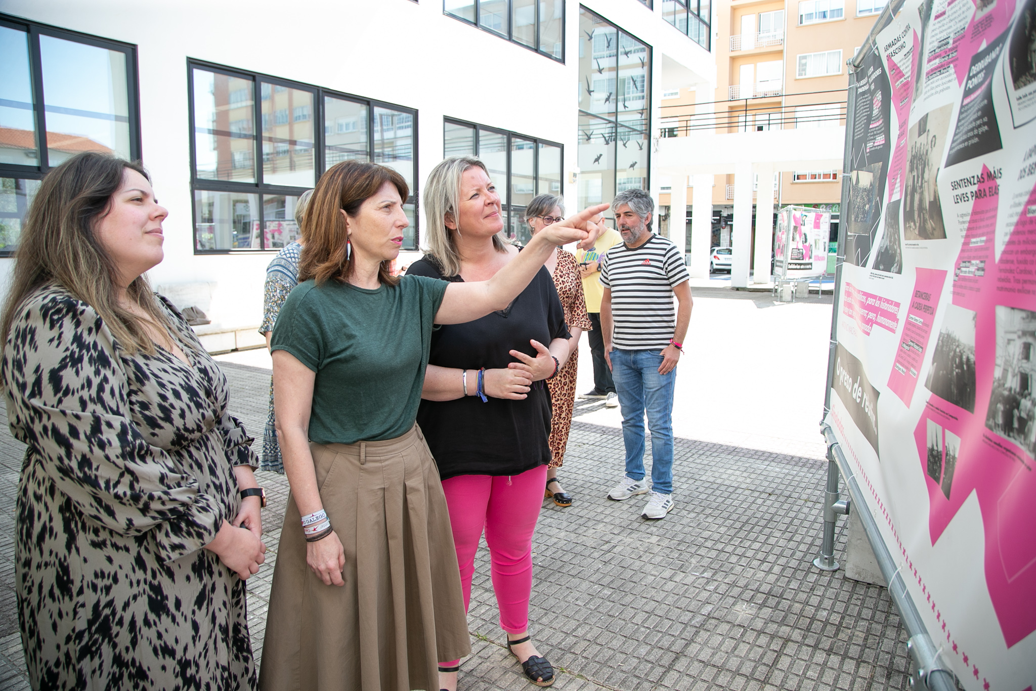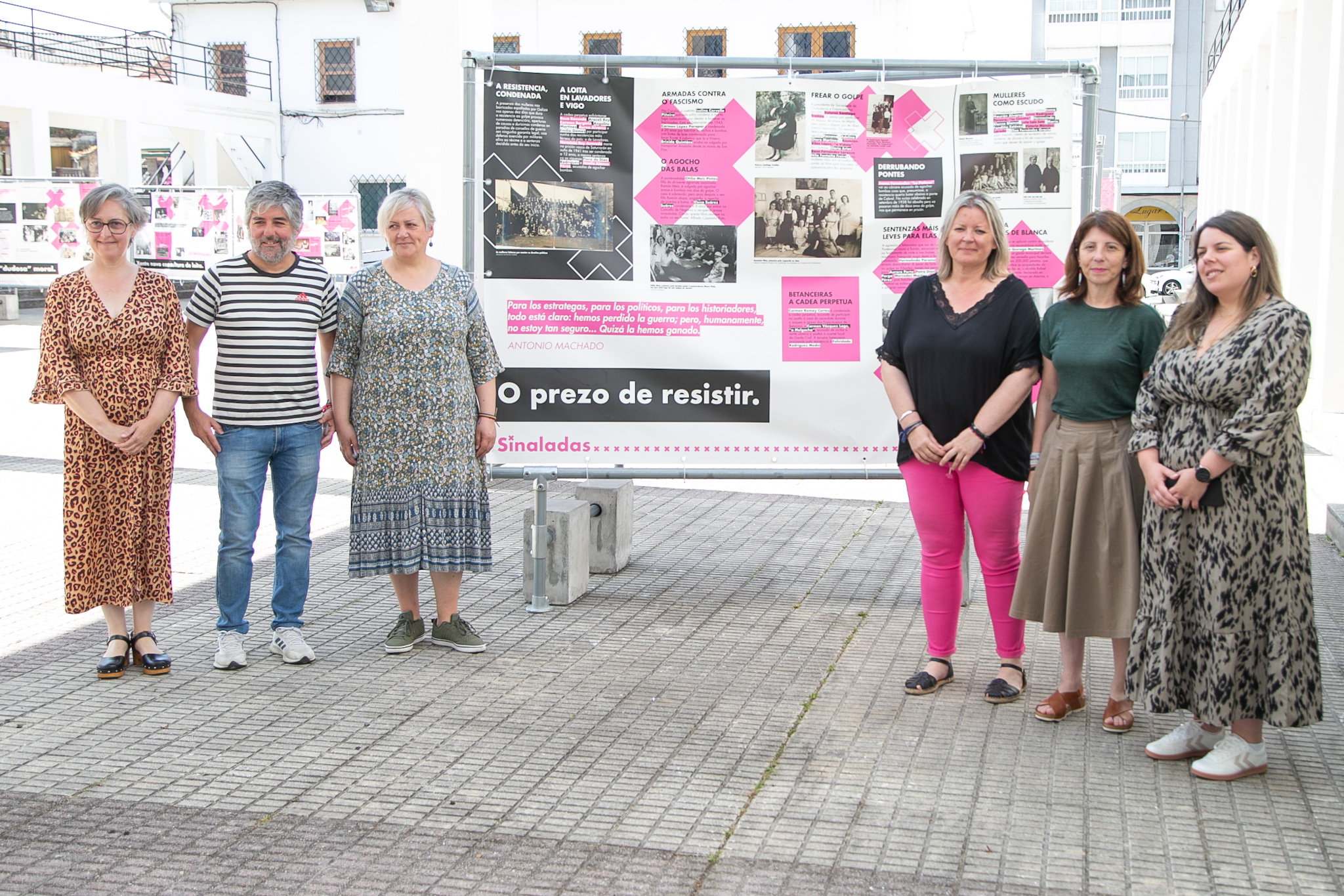 "Esta é unha exposición de rúa", dixo Agra na súa intervención, "que permite unha achega á Memoria Histórica desde o espazo común, habitual e amable polo que camiñamos, paseamos, mercamos e desenvolvemos a nosa vida no día a día". "Un espazo público", engadiu, "que ademais de acollernos nos informa e dá pé a reflexión e o debate, arredor do que nestes paneis se representa: desde as revoltas agrarias, pasando pola situación educativa da muller durante a II República, a represión durante o franquismo e o exilio, ata a participación das mulleres na resistencia e na loita para conseguir a democracia".