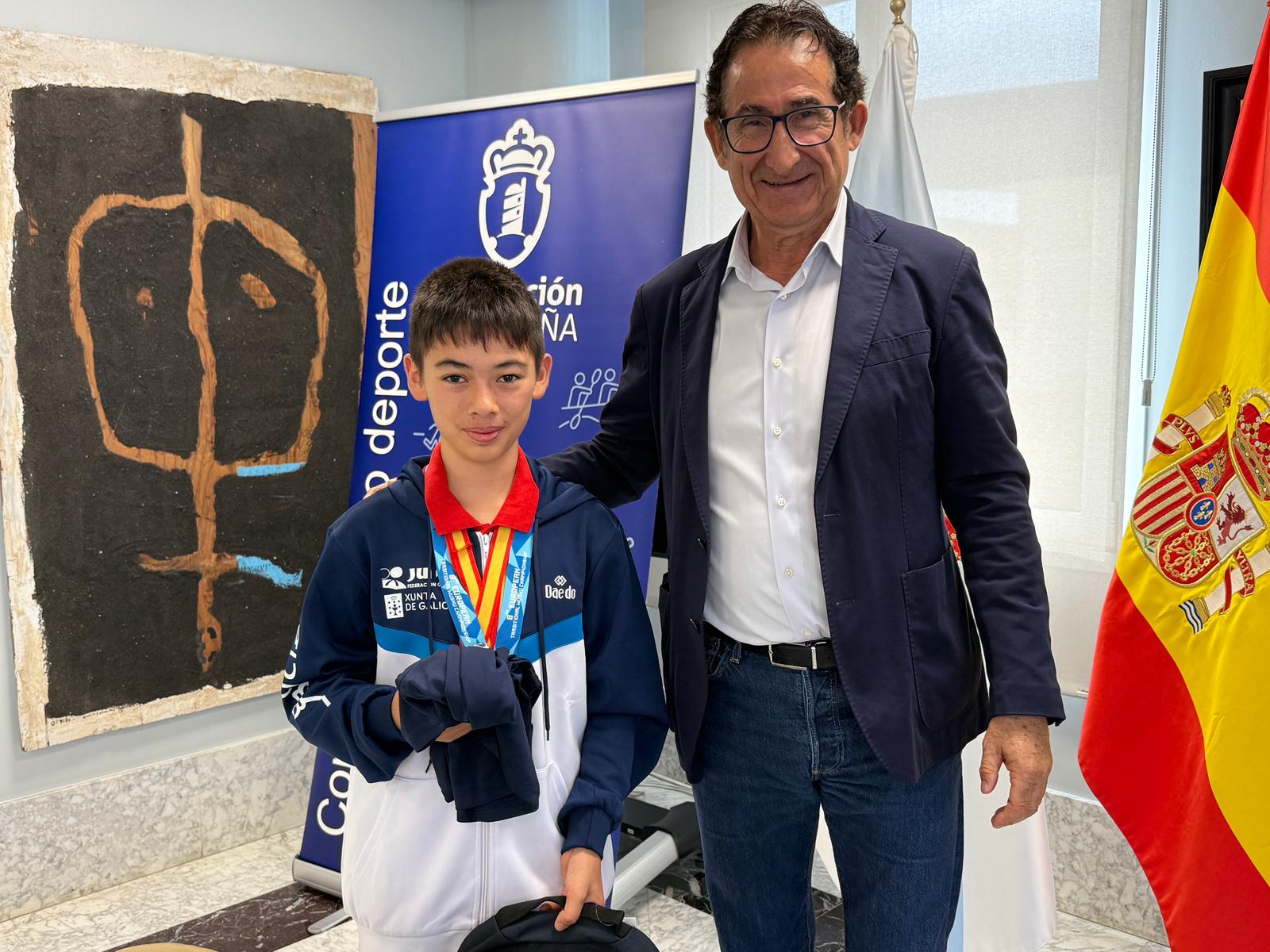 O deputado de Deportes, Antonio Leira, recibiu no pazo provincial ao subcampeón de Europa de kung fu na categoría de 12 a 14 anos, Erik Martín. O rianxeiro, o único galego que participou no Europeo celebrado en Grecia, acadou a prata nun torneo no que participaron preto de 500 deportistas de 20 países.