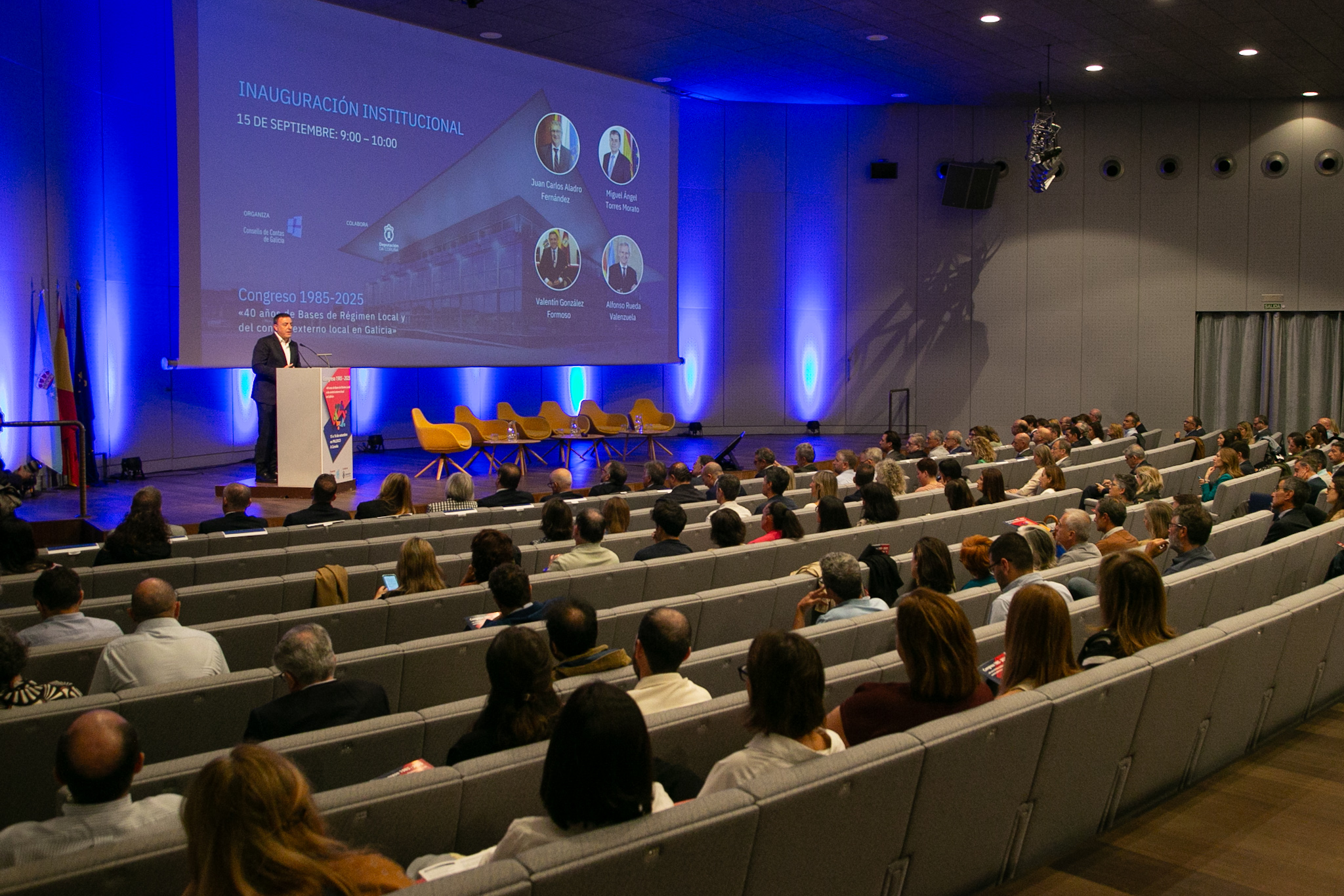 O Congreso "1985-2025, 40 anos de Lei de bases de réxime local e do control externo local en Galicia" foi inaugurado polo presidente da Deputación da Coruña, Valentín González Formoso, xunto co presidente da Xunta, Alfonso Rueda, o conselleiro maior do Consello de Contas de Galicia, Juan Carlos Aladro, e o conselleiro do Tribunal de Cuentas, Miguel Ángel Torres.